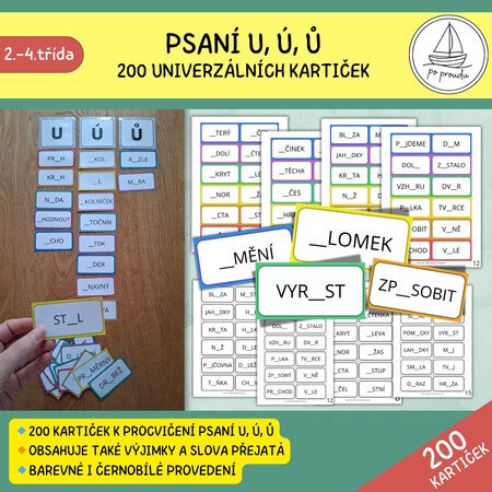- 200 kartiček se slovy, kde žáci doplňují u, ú, ů
