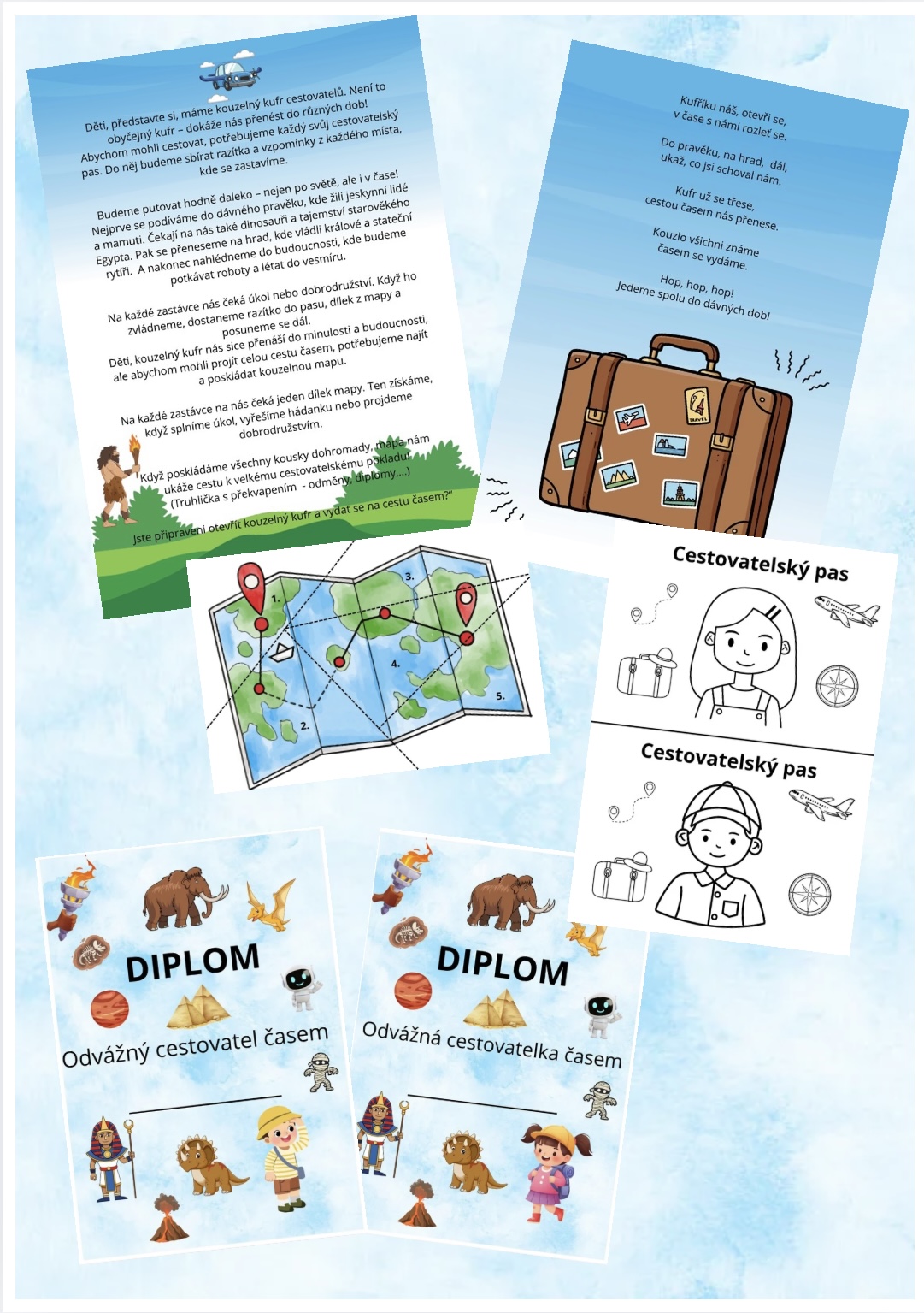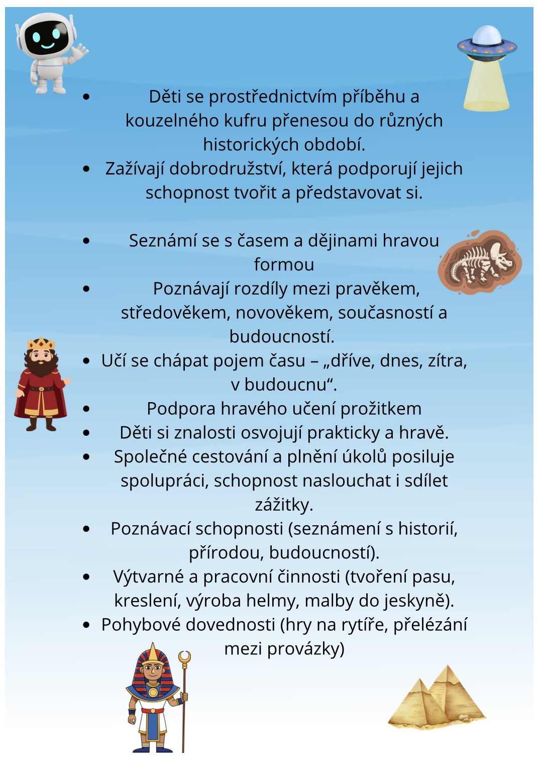 Děti se prostřednictvím příběhu a kouzelného kufru přenesou do různých historických období.