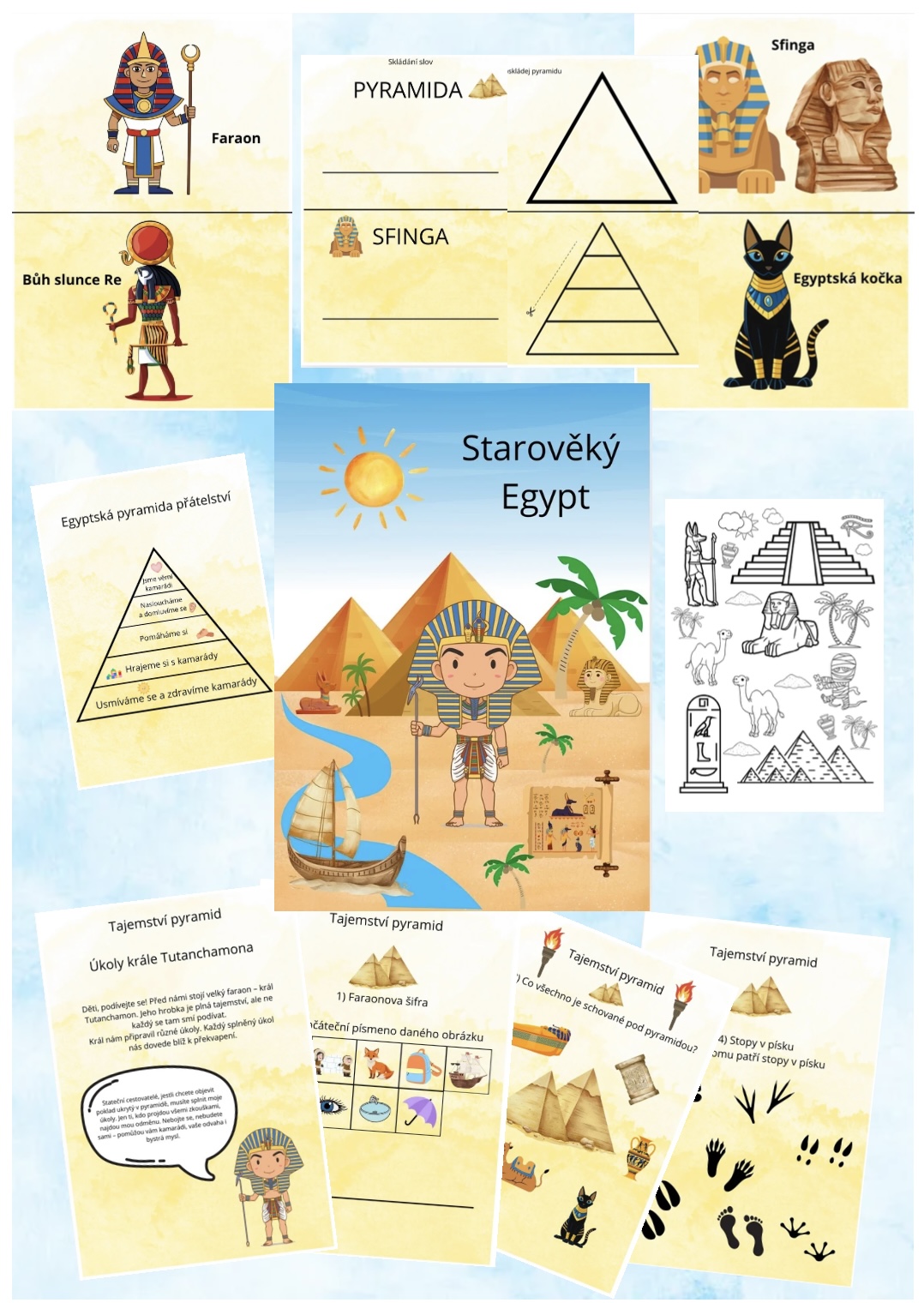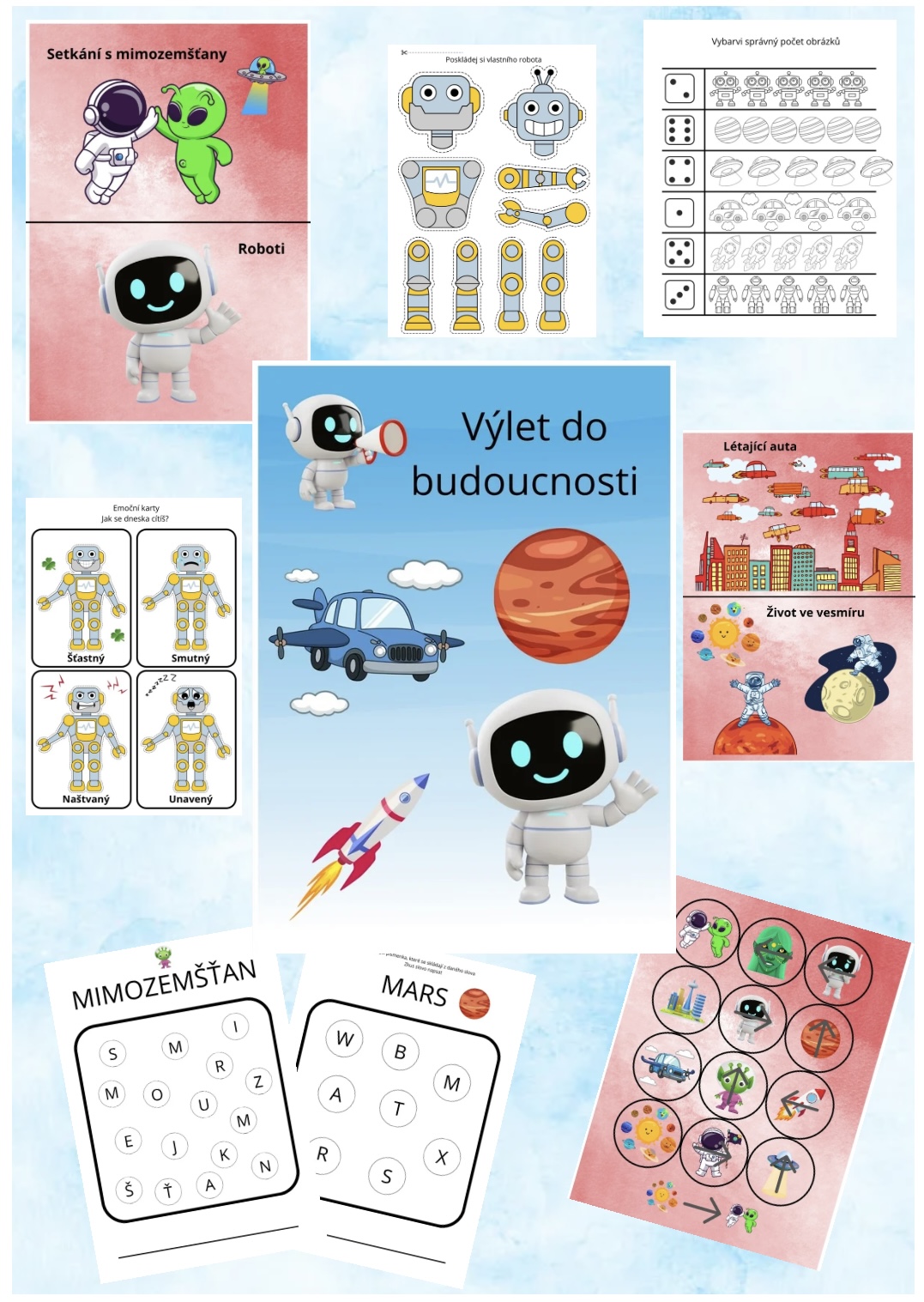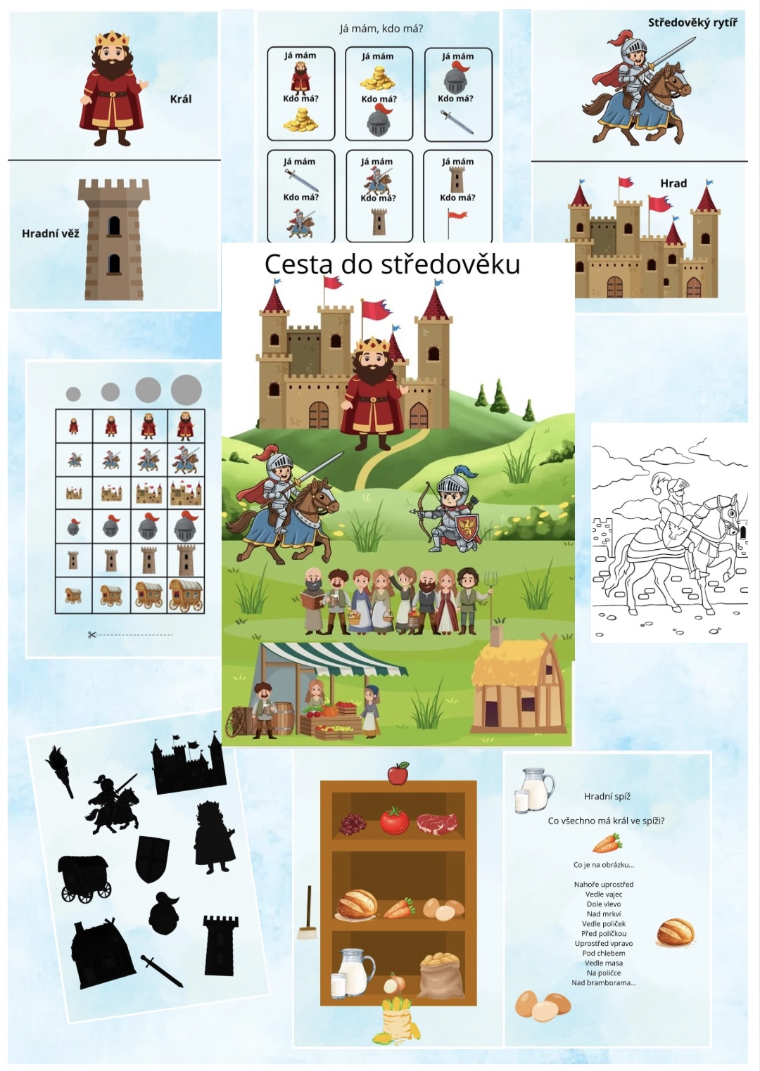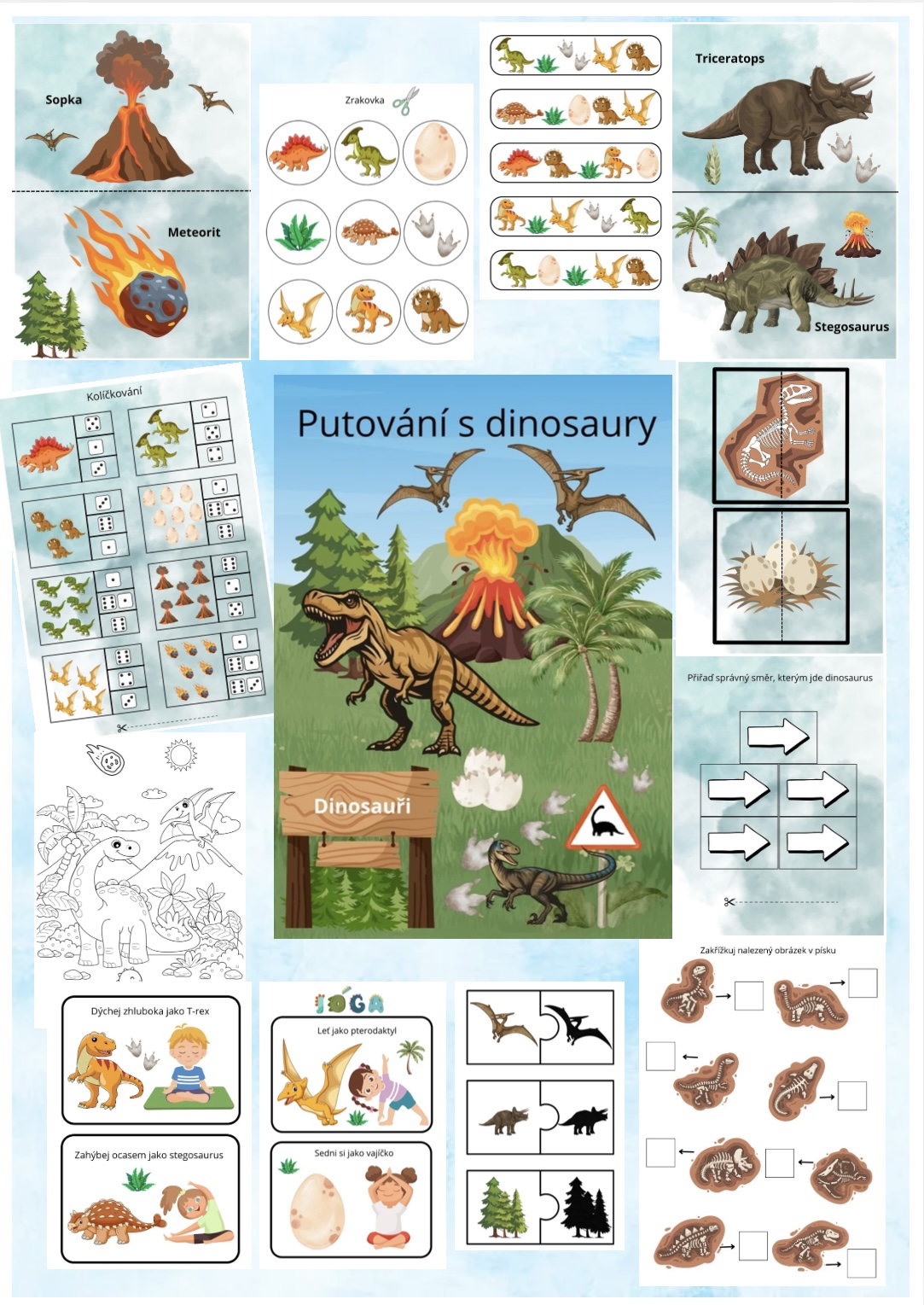 Soubor osahuje: Pracovní listy - stínohrátky, počty, domino, spojování, tvary, grafomotorika, omalovánky Námětová hra -