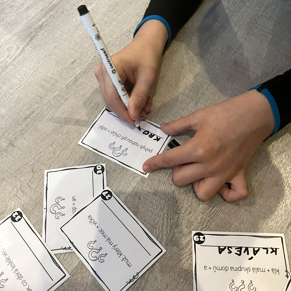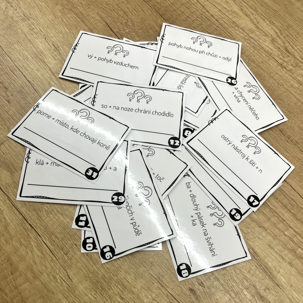 Kartičky zalaminujeme. Úkolem žáků je rozluštit rébusy na kartičkách. Řešení píšou na linku, kde ho učitel/ka zkontroluje.