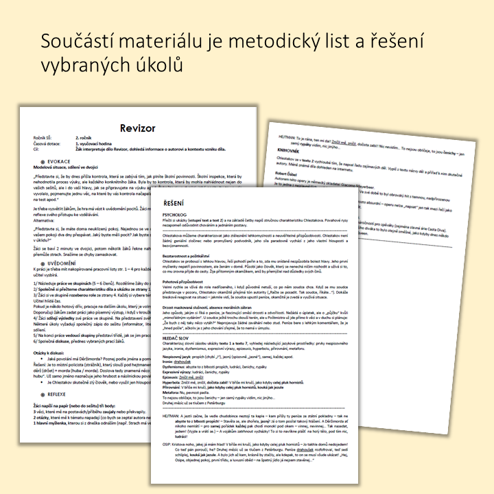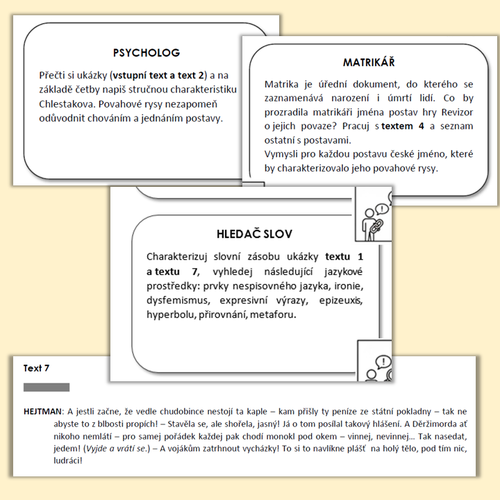 Zjišťují z krátkých textů informace o autorovi, o tom, jak bylo dílo přijato ve své době apod. Jeden úkol je zaměřen na jazyk díla, jeden úkol je tvůrčí. Každý si vybere podle svého gusta, pak si informace předají ve skupině.