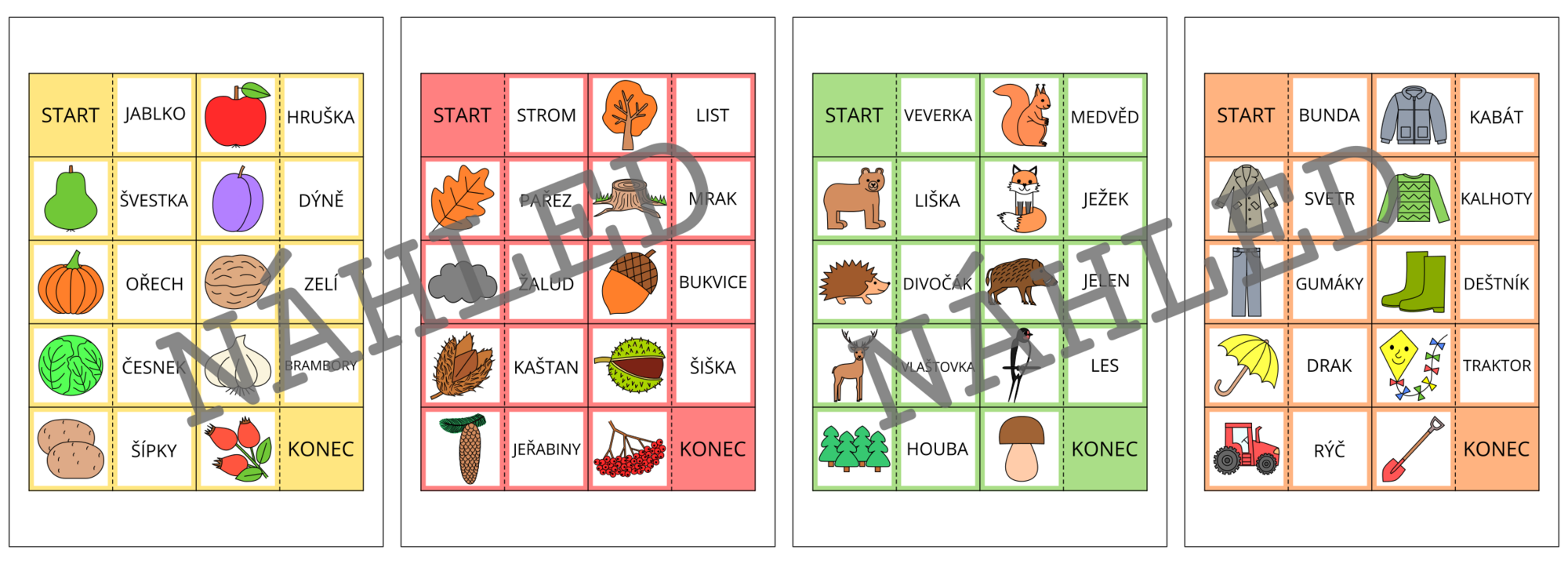 Materiál PODZIM - DOMINO S OBRÁZKY A SLOVY obsahuje čtyři strany s kartičkami domina.