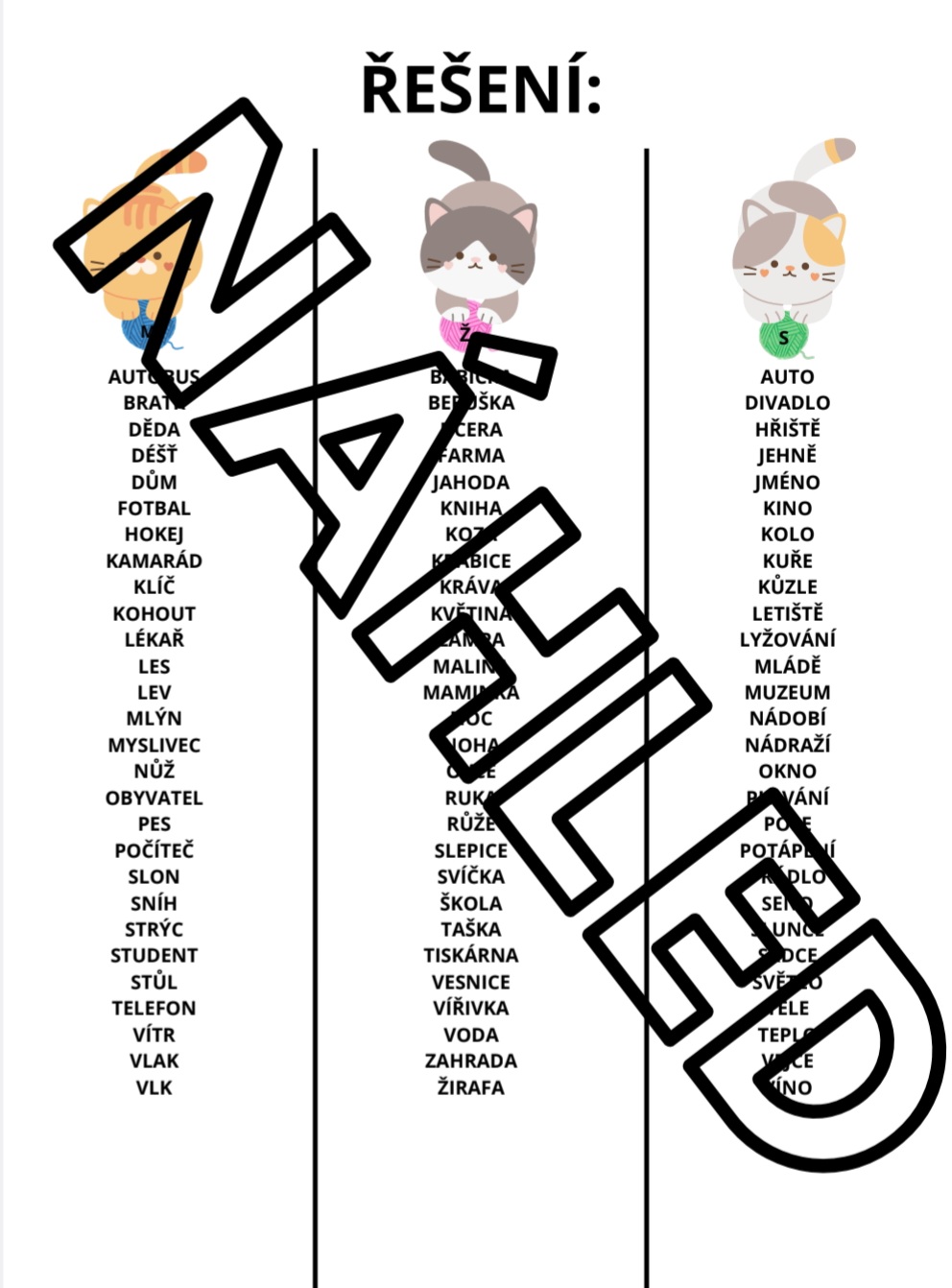 - Druhé kočičce patří slova ženského rodu (Ž)