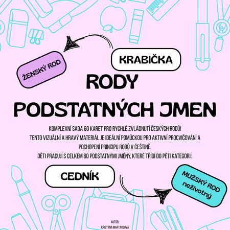 Tento vizuální a hravý materiál je ideální pomůckou pro aktivní procvičování a pochopení principu rodů v češtině.