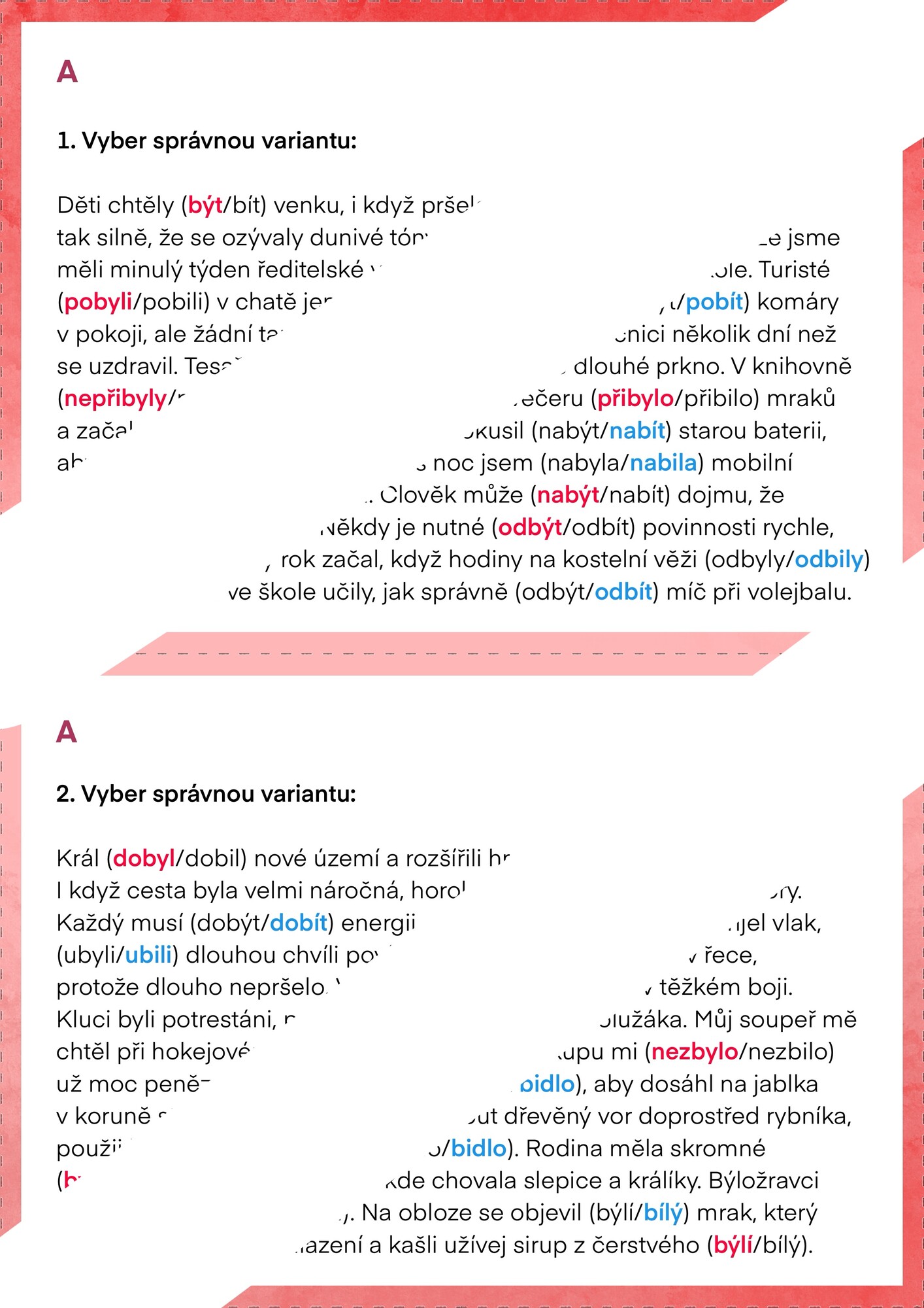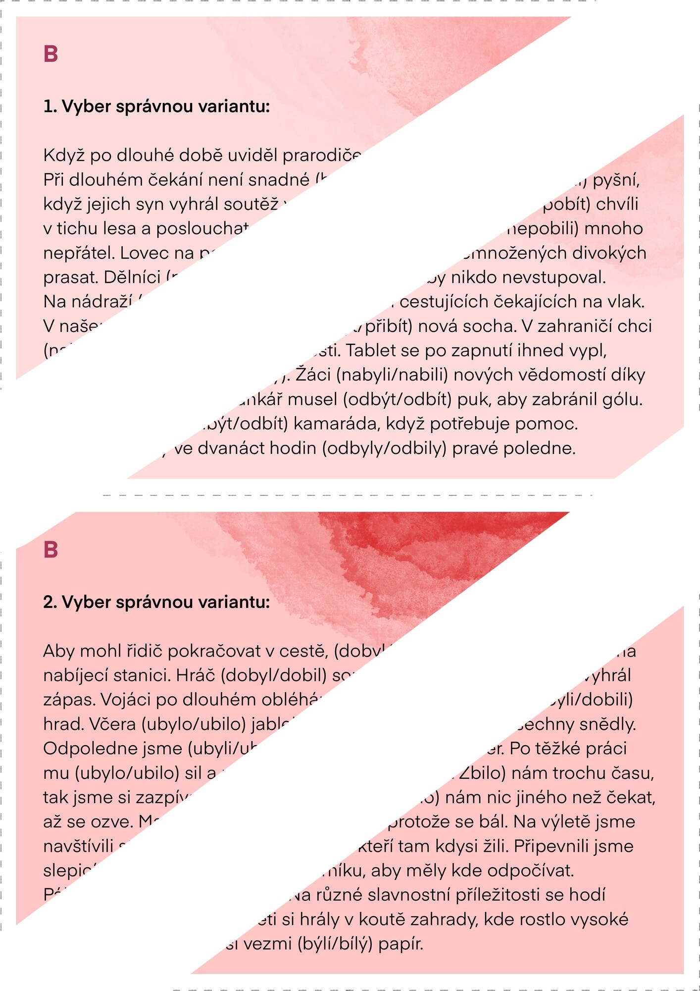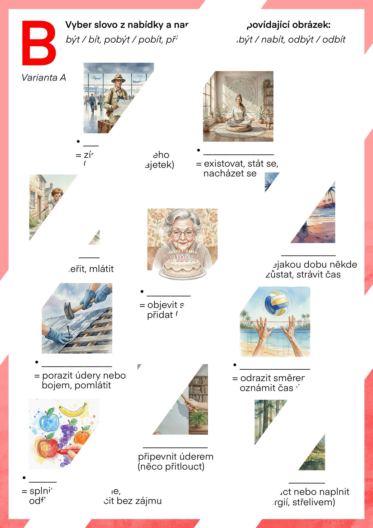• Sadu cvičných karet ve variantách A a B, určenou k procvičování významového rozlišení slov v různých kontextech – formou výběru správné varianty