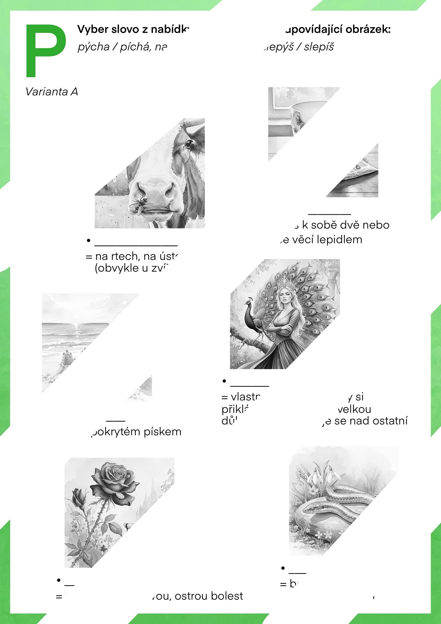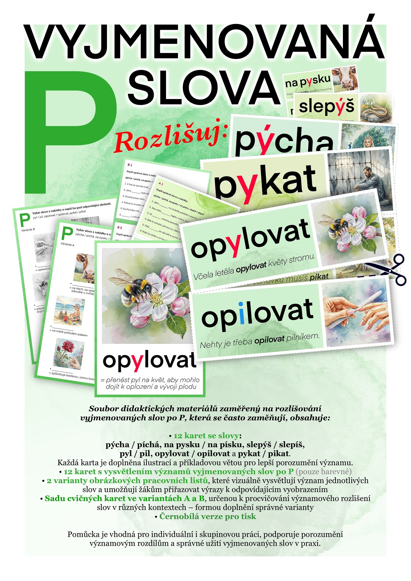 • 12 karet s vysvětlením významů vyjmenovaných slov po P (pouze barevné)