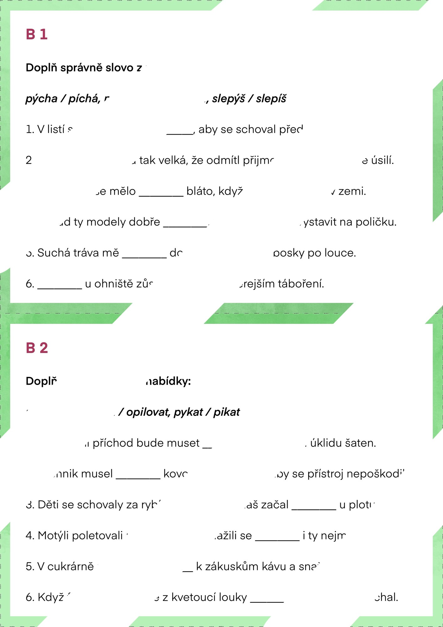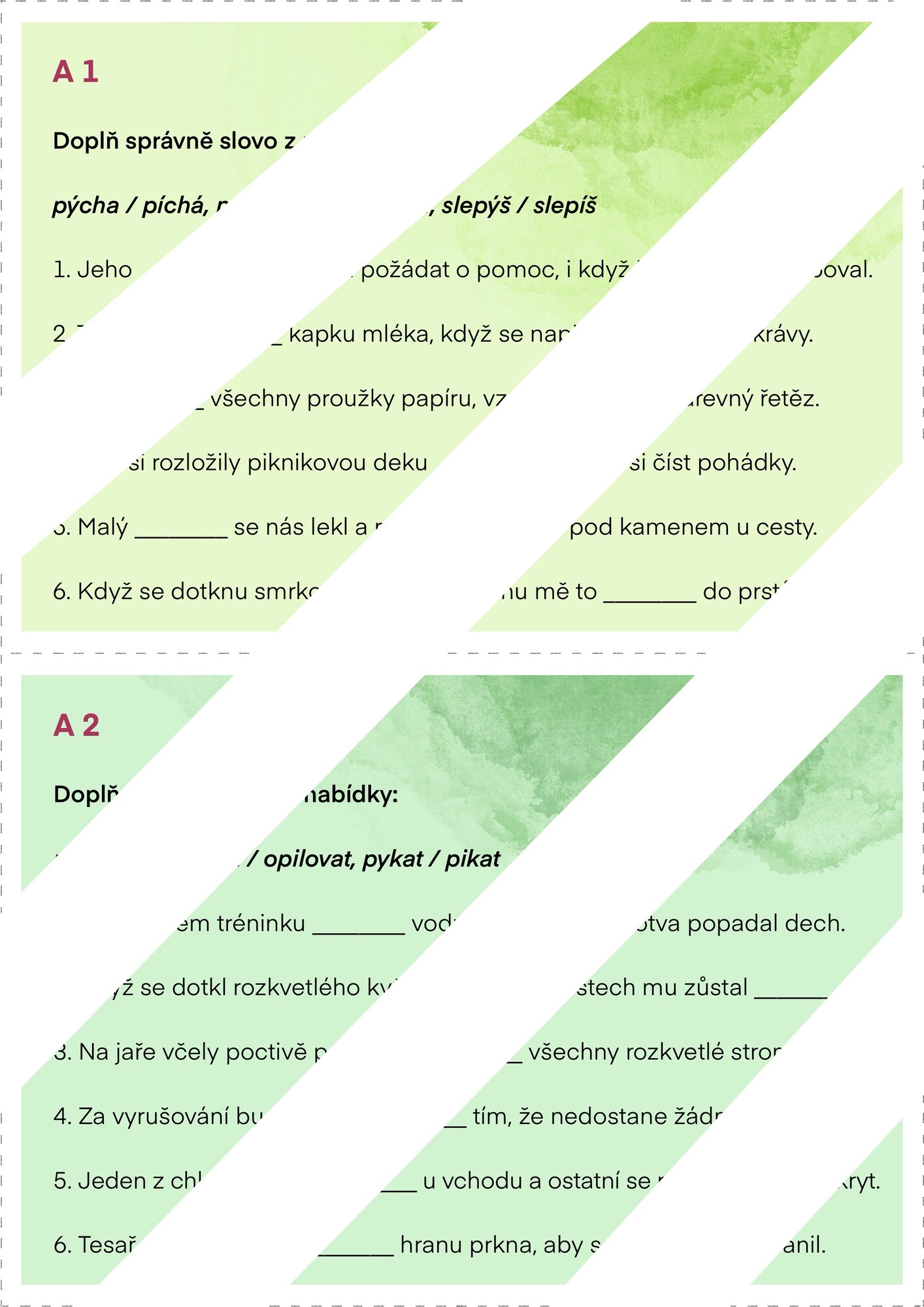 pyl / pil, opylovat / opilovat a pykat / pikat.