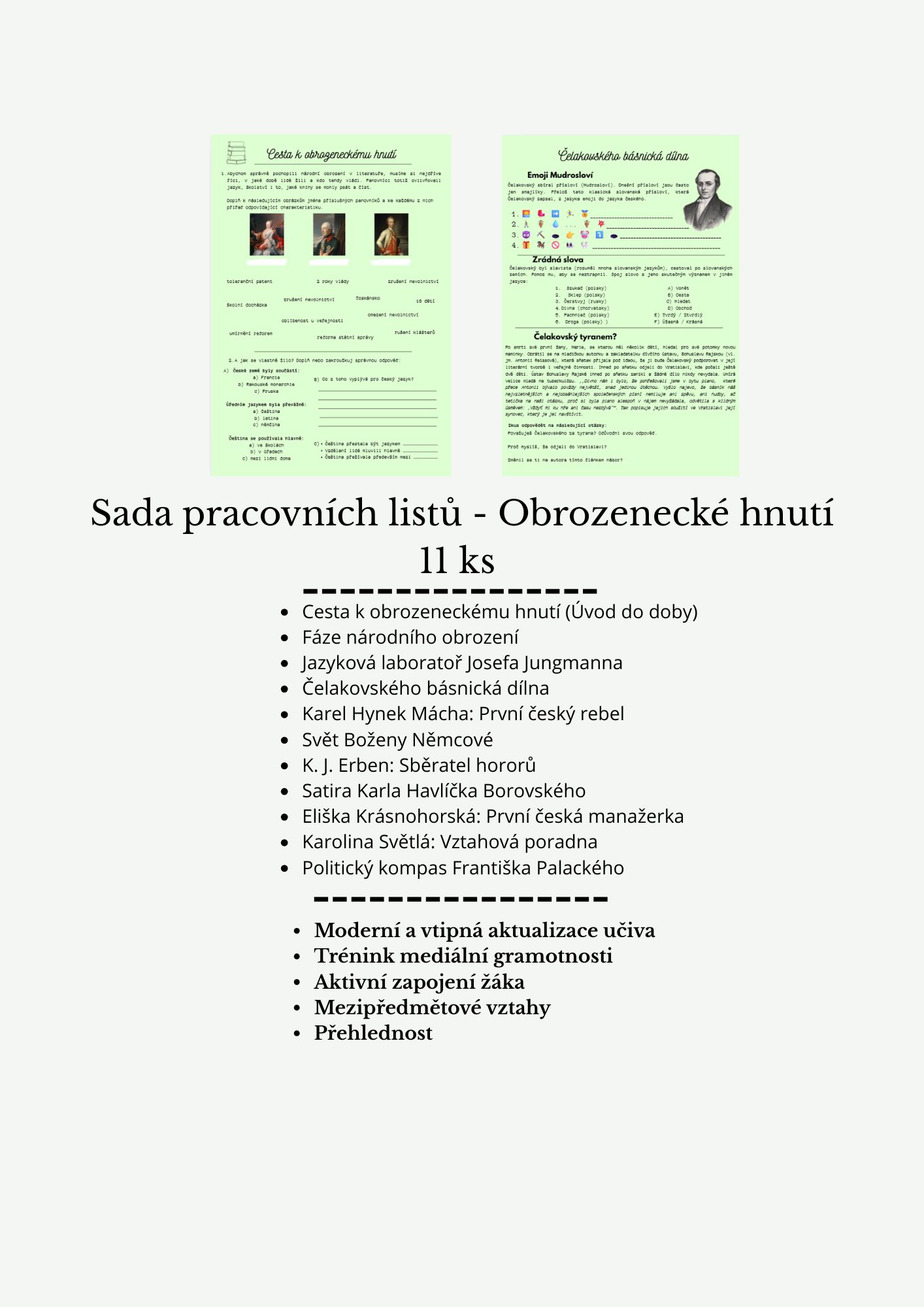 Národní obrození JINAK: Sada pracovních listů pro 8.–9. ročník