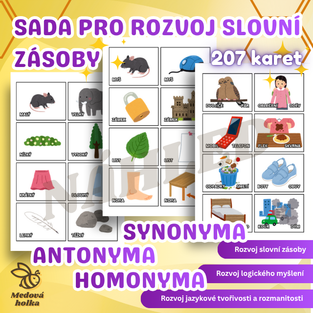 Tento materiál je zaměřen na rozvoj slovní zásoby a porozumění významovým vztahům mezi slovy.
