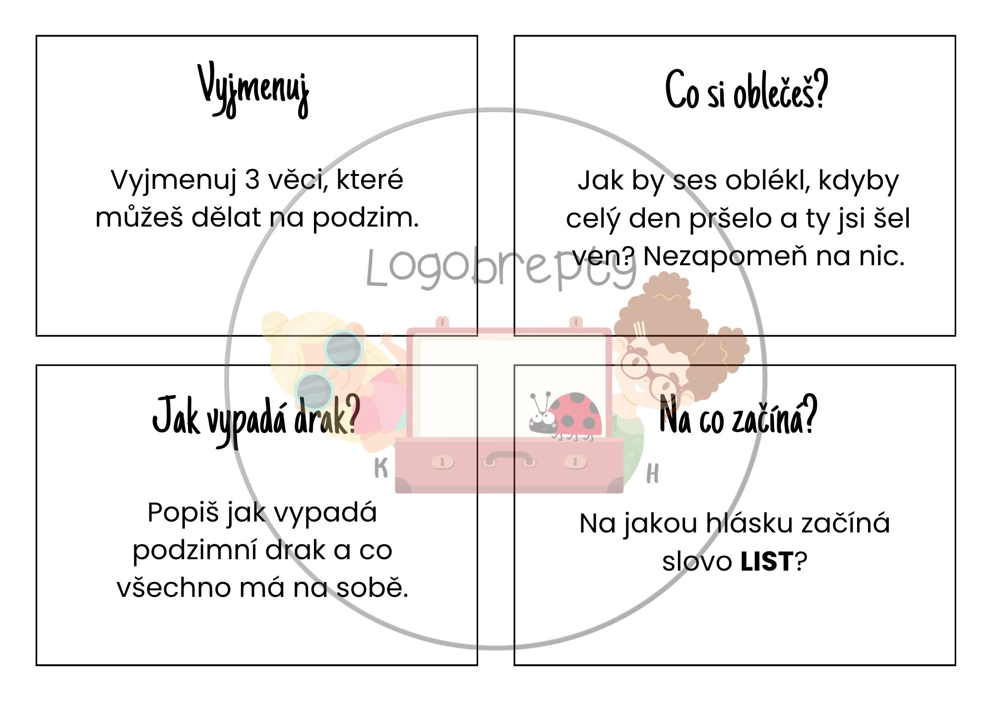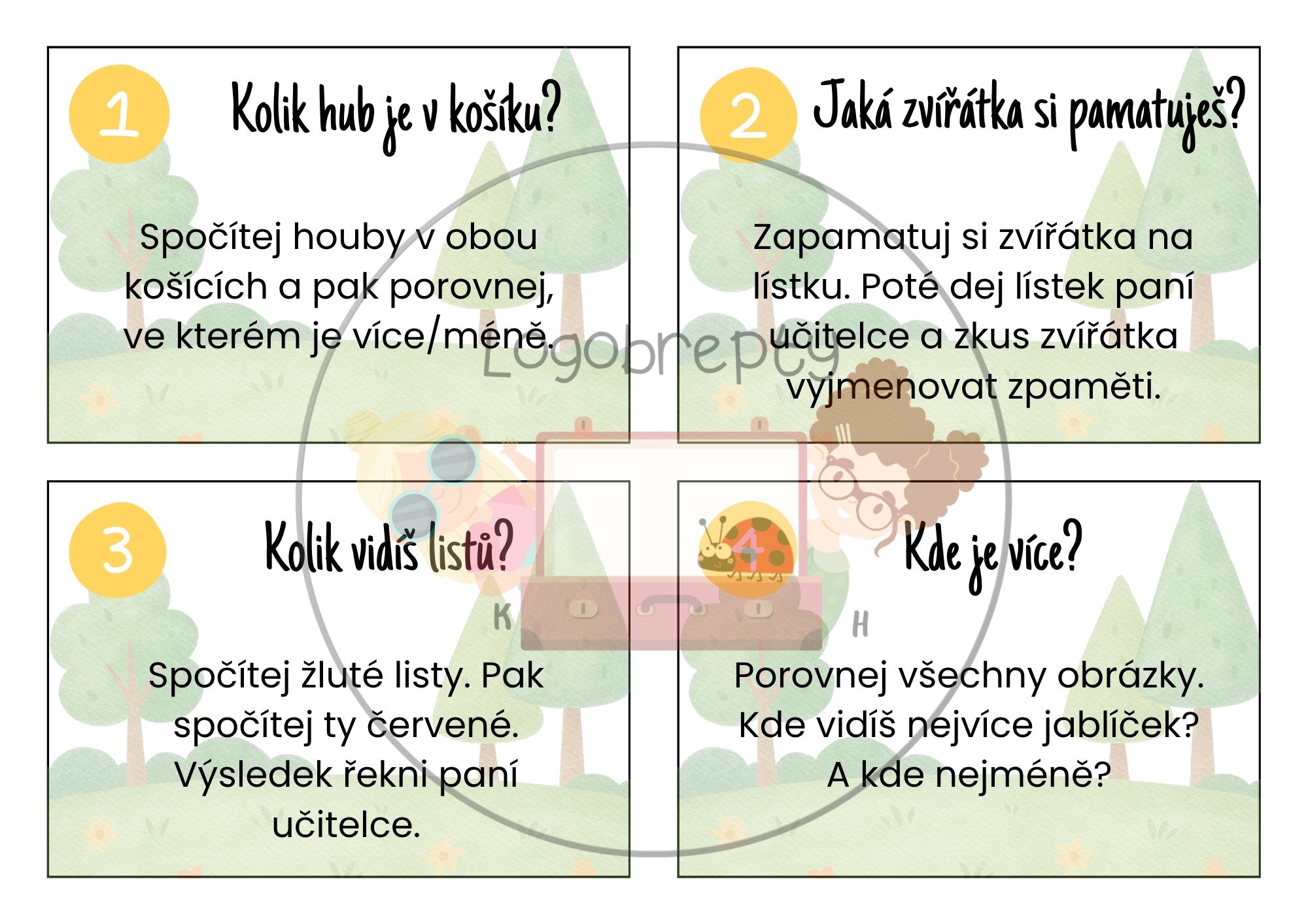 Soubor obsahuje 28 karet s úkoly, které rozvíjejí široké spektrum dovedností – od jazykových až po logické.