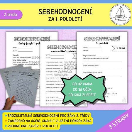 Upozornění: Sebehodnocení 1. pololetí z českého jazyka a matematiky je součástí také balíčku Pololetní opakování pro 2. třídu – ČJ, M + sebehodnocení. Celkové sebehodnocení je však dostupné pouze v tomto samostatném materiálu.