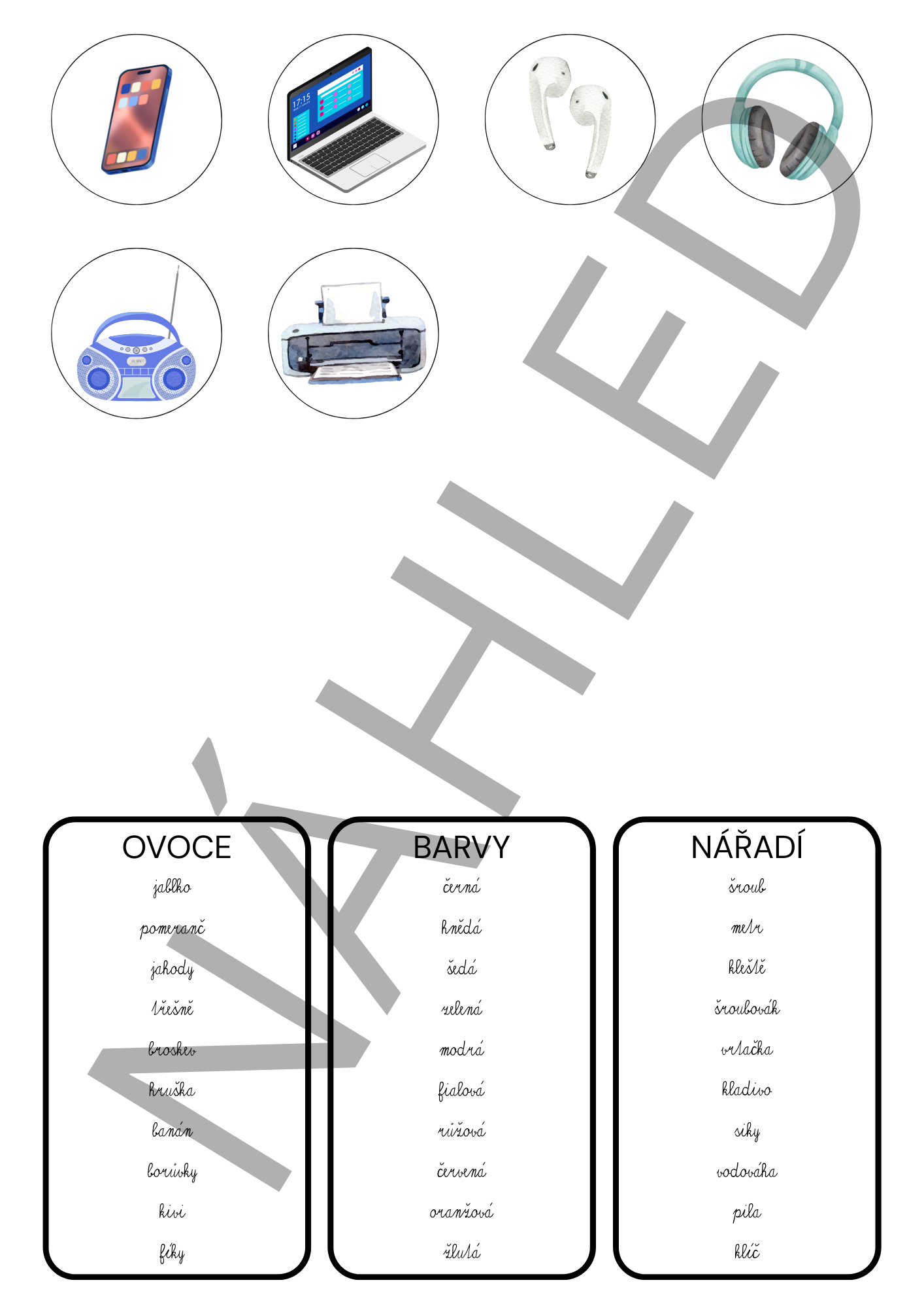 Obsah: 15 velkých sedmikrásek s NADŘAZENÝM pojmem 150 malých obrázků k třídění a určování pojmů podřazených 15 kartiček se slovní nápovědou