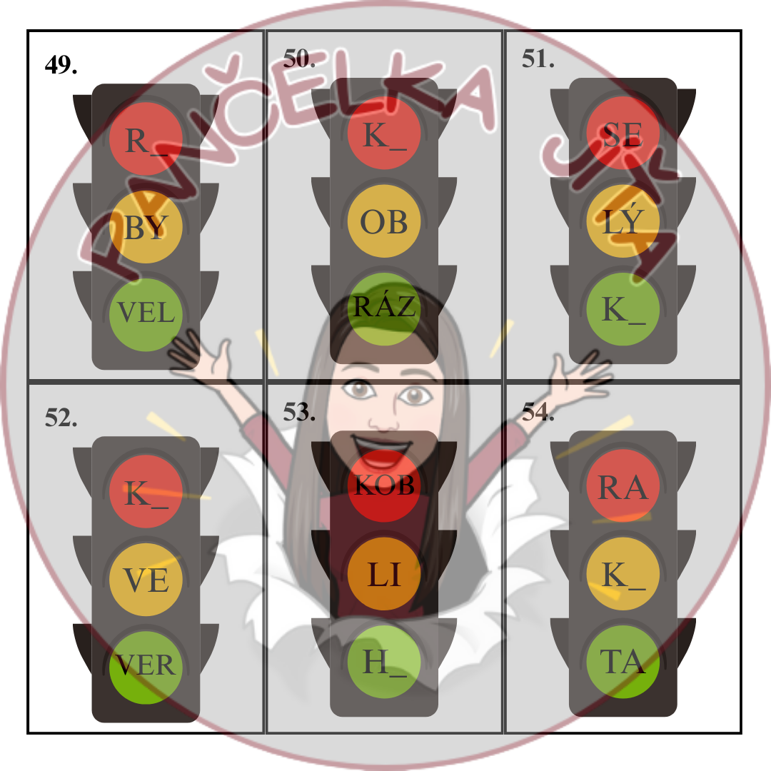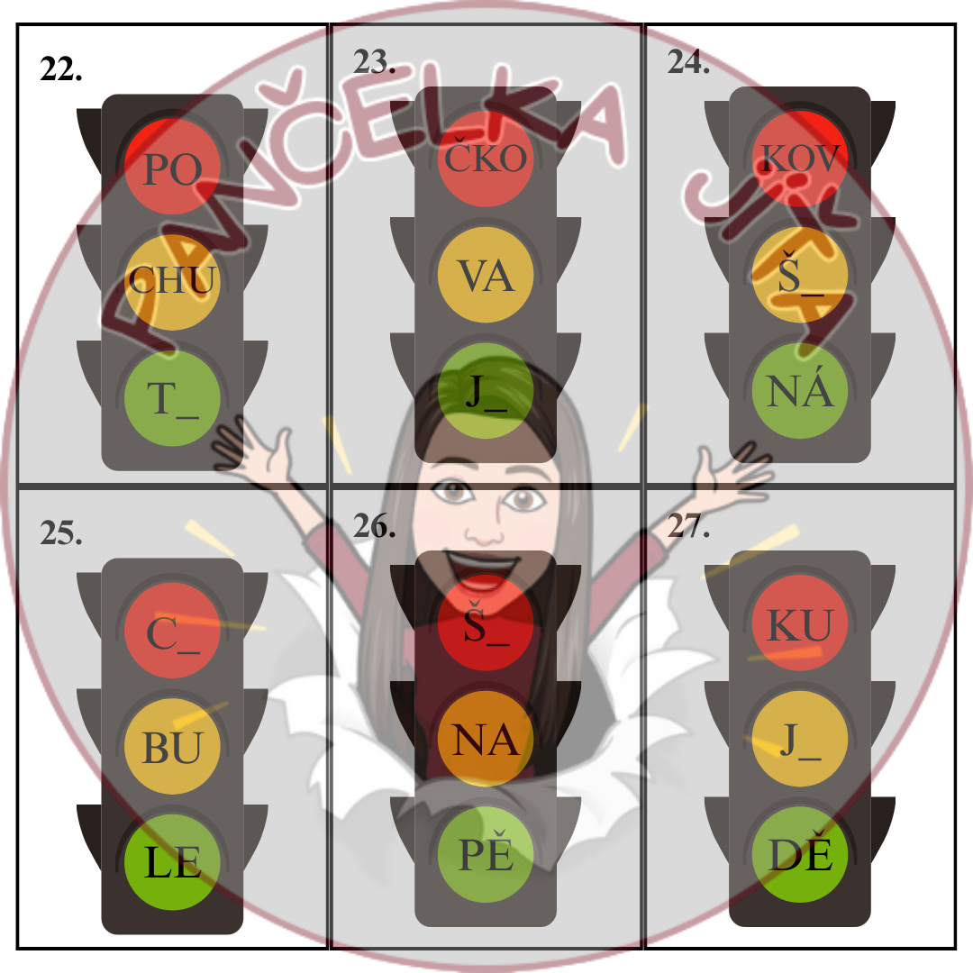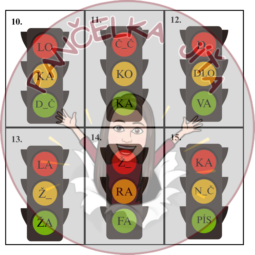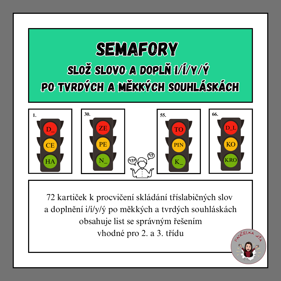 SEMAFORY - slož slovo a doplň i/í/y/ý po tvrdých a měkkých souhláskách