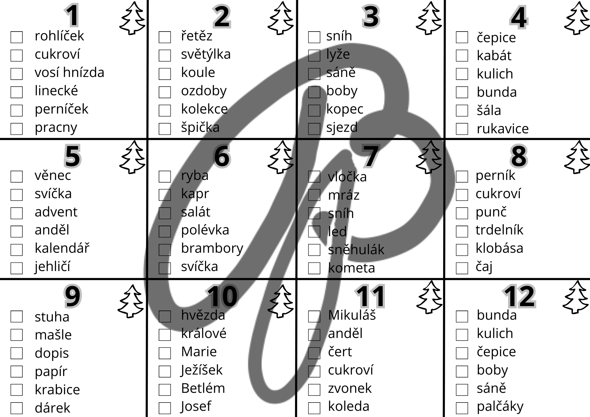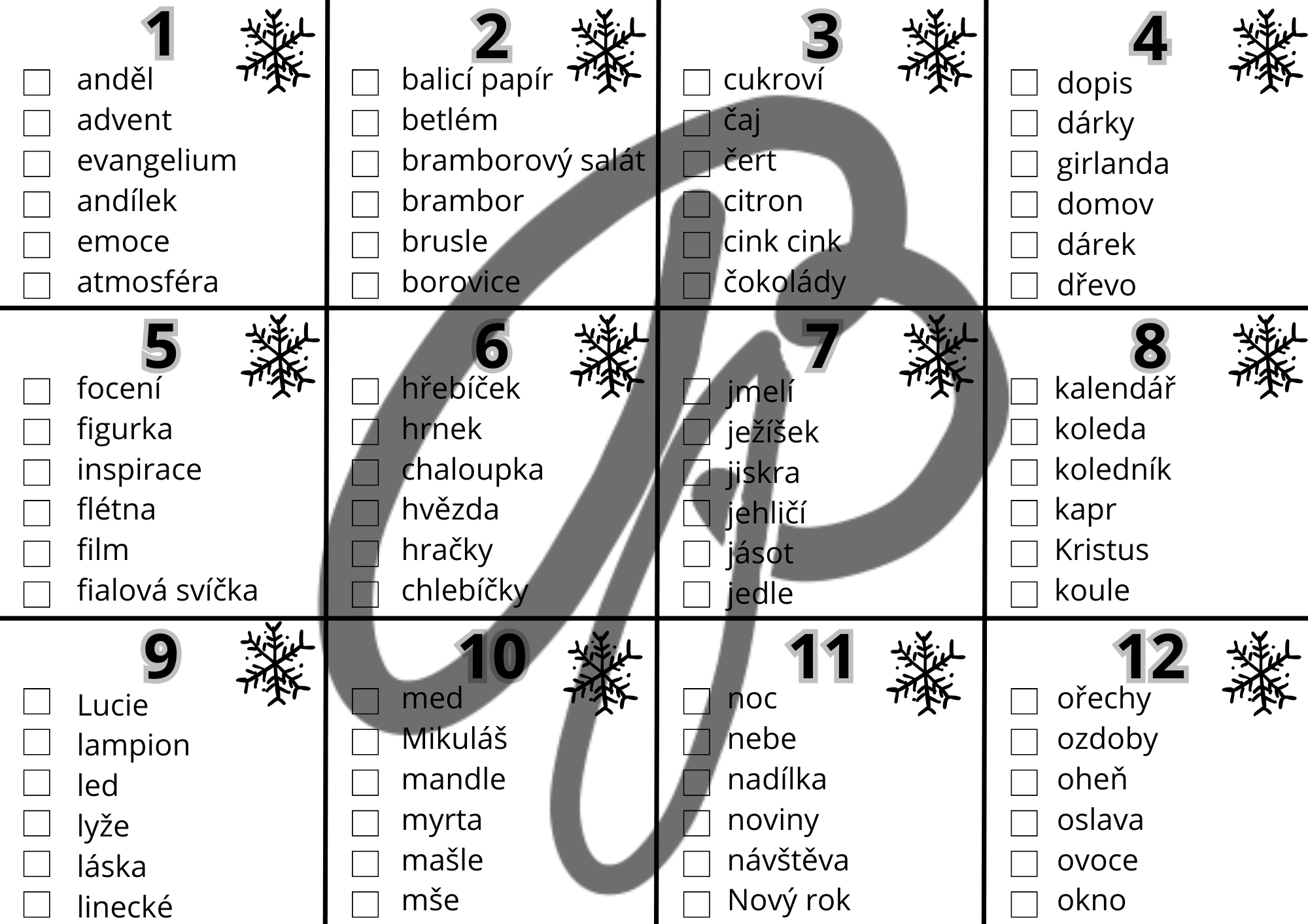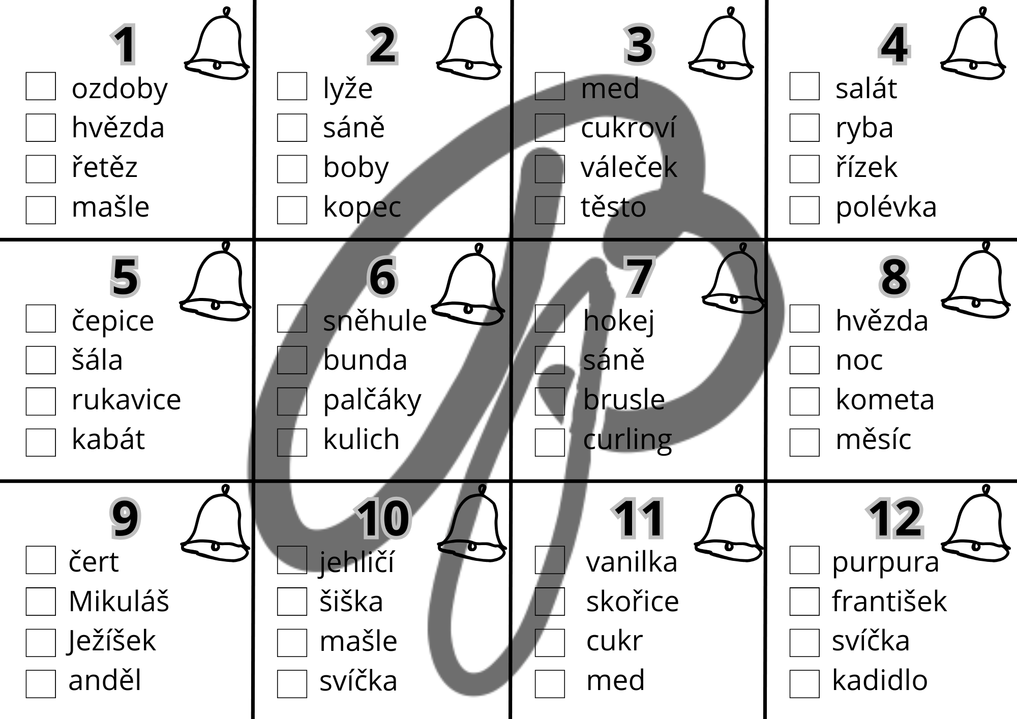 těžké (vločka) - 6 pojmů začínajících na stejné (podobné) písmeno na kartičce