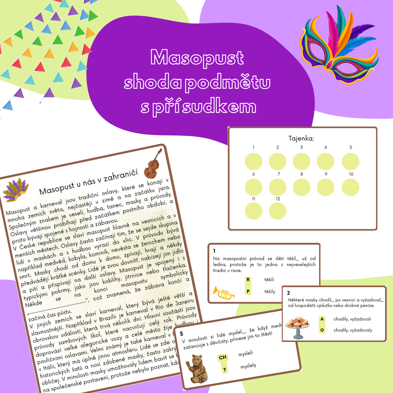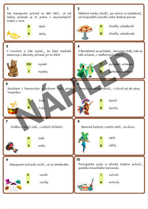 Takže nejen že si žáci procvičí shodu podmětu s přísudkem, ale také se dozví, jak se liší slavení masopustu u nás a v zahraničí.