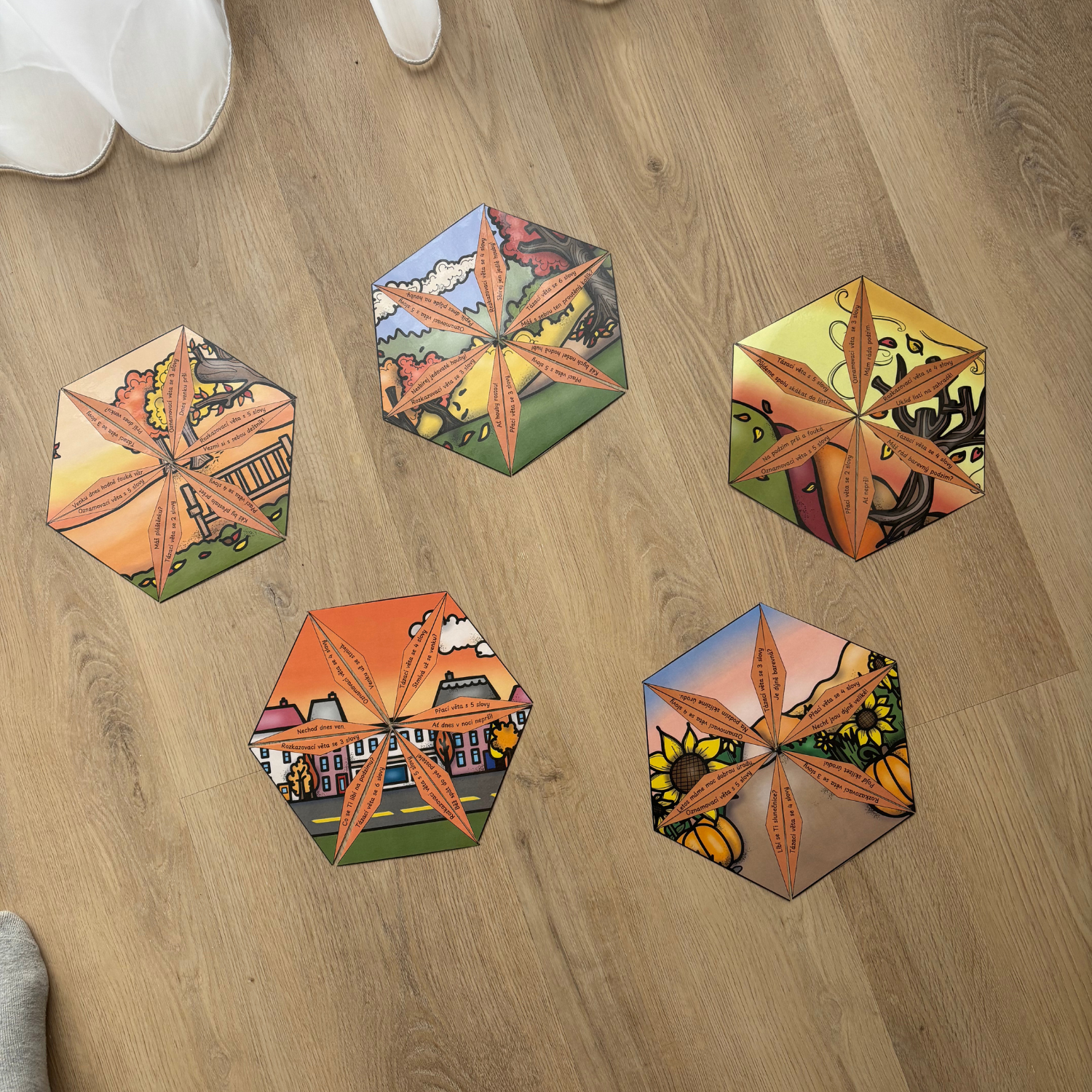 Skládací hexagony - druhy vět, počítání slov ve větě - podzim + Halloween
