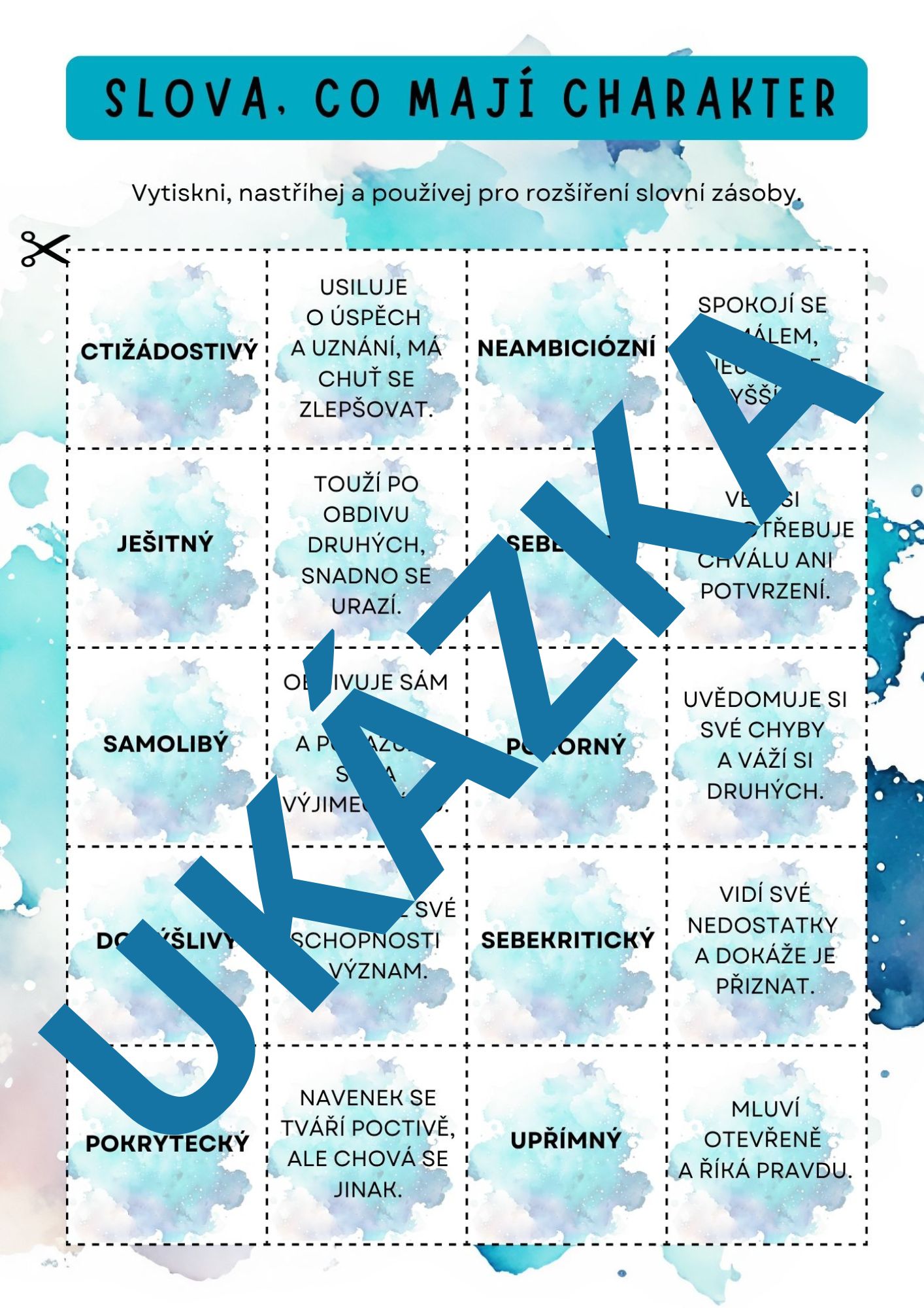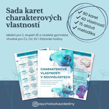 Materiál obsahuje 40 pečlivě vybraných charakterových vlastností a 40 stručných definic, které můžete kombinovat v celé řadě aktivit napříč předměty — od českého jazyka přes občanskou a rodinnou výchovu až po třídnické hodiny či základy psychologie.