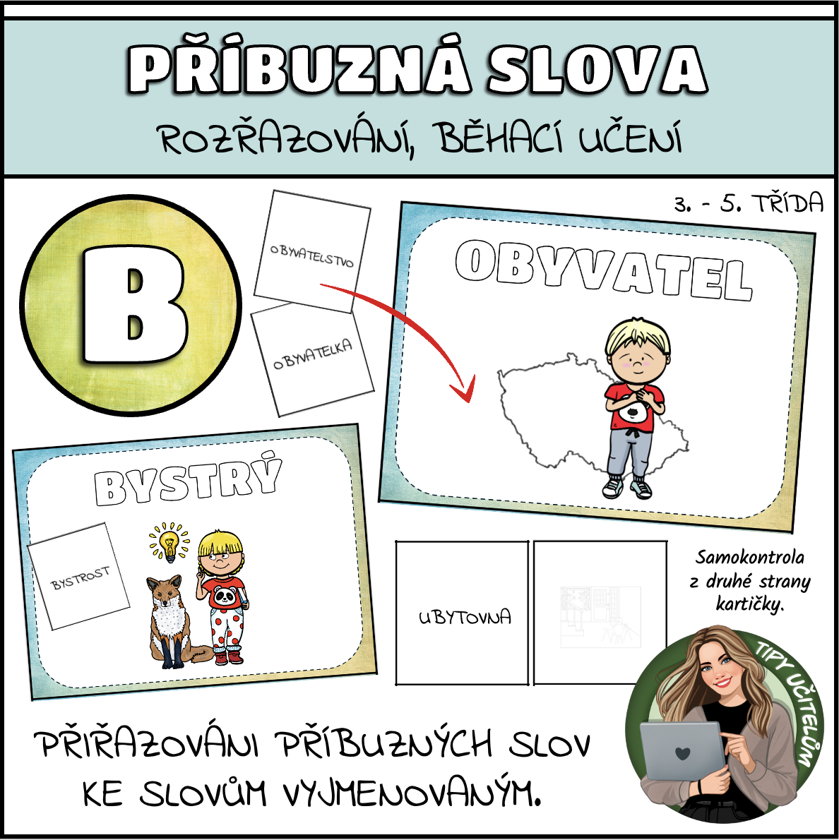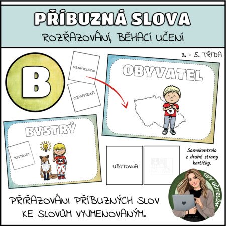 Tento materiál slouží k vyvozování či procvičování slov příbuzných (u slov vyjmenovaných).