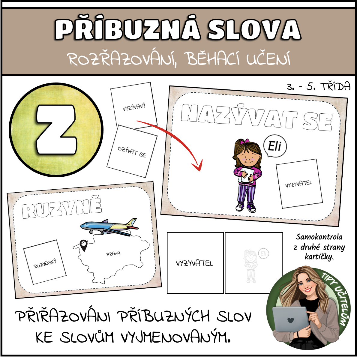 - Běhací učení (běhačka) – Kartičky rozprostřete po chodbě či po třídě. Úkolem žáků je najít kartičku a přiřadit ke správnému vyjmenovanému slovu.
