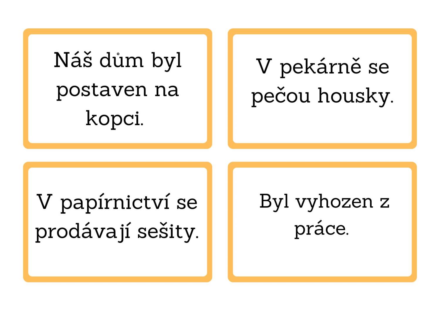 - 24 kartiček vět se slovesem v činném rodu