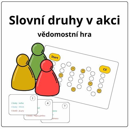 Procvičte si slovní druhy hraním společenské hry! Utkají se týmy, jejichž úkolem je nejen správně určovat slovní druhy, ale také dobře odhadnout své schopnosti. Týmy si totiž předem volí, zda chtějí jednoduchý úkol za dva body, obtížnější za čtyři, nebo ten nejtěžší, za který mohou získat pět bodů.