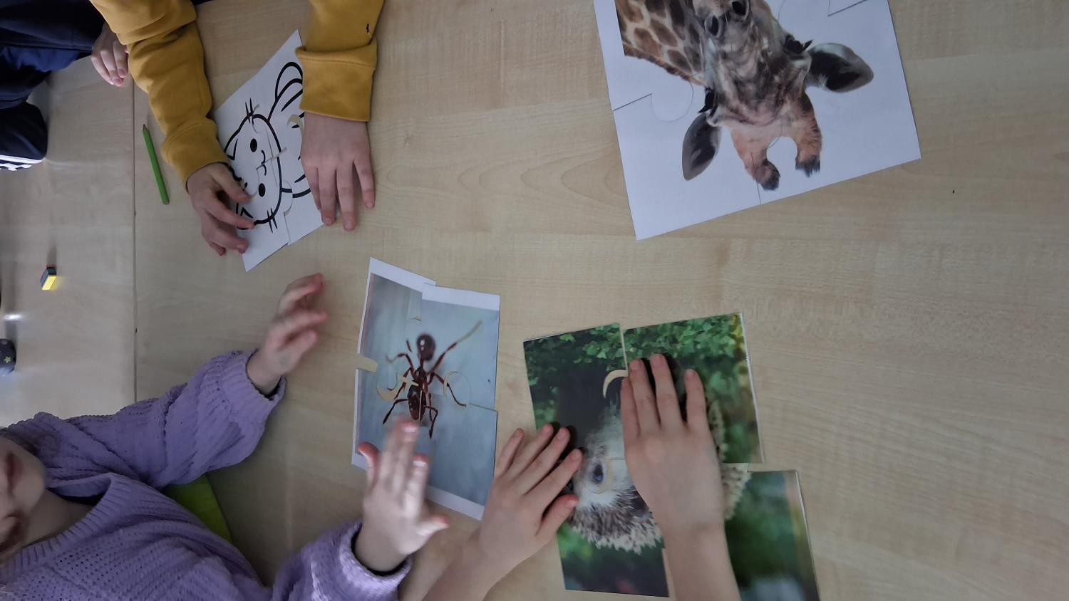 kontrola správnosti- pokud děti přiřadily všechny 4 dílky správně, vznikne jim po otočení obrázek zvířete