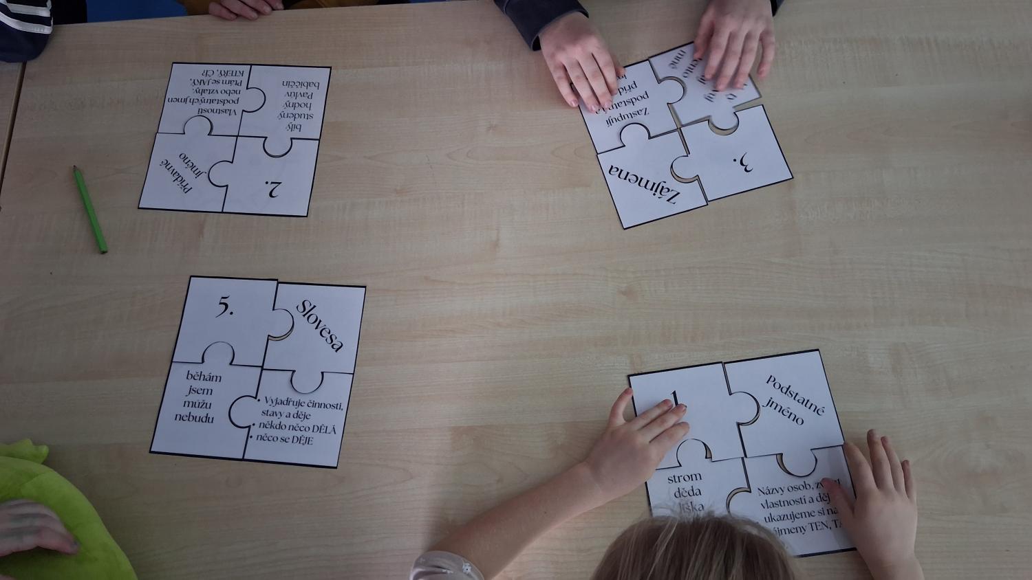 - děti k sobě přiřazují všechny 4 dílky - číslo, slovní druh, jeho stručná definice a příklad zástupci daného slovního druhu