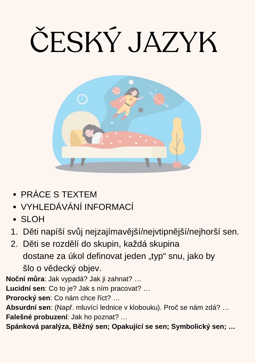 Pracovní listy pracují s tématem snu.