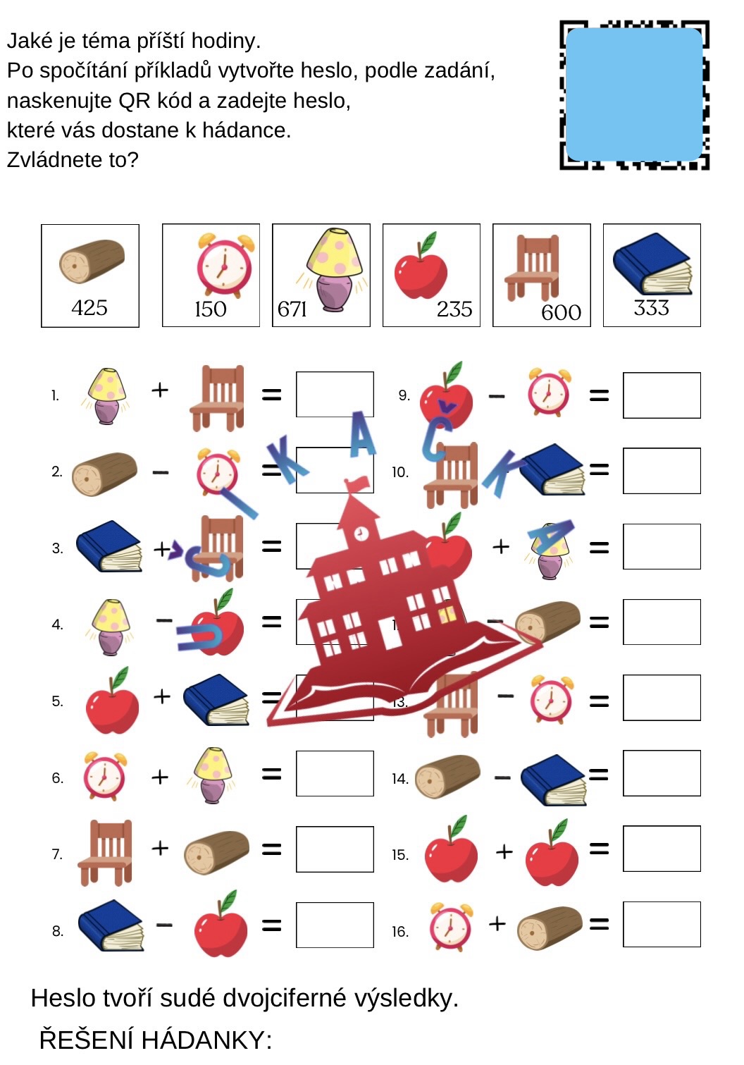V matematice si procvičí práci s chybou. V souboru také najdete hru, která propojuje počítání a elektroniku (QR kód, který děti dostane k hádance).