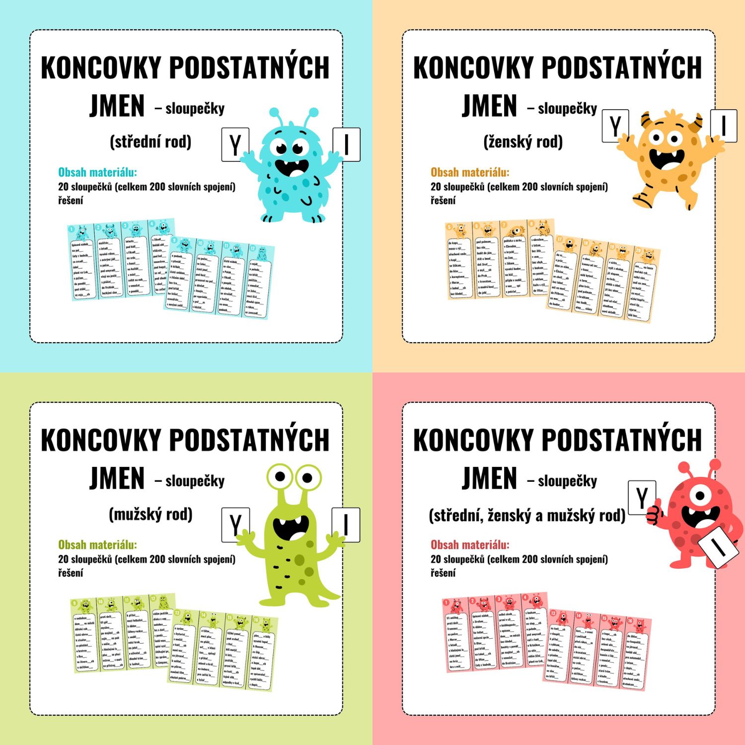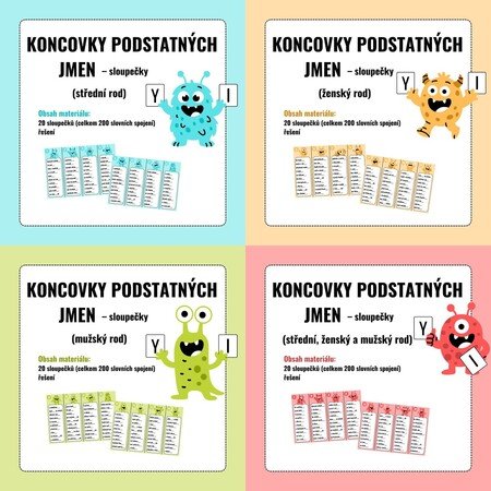 20 sloupečků středního, ženského a mužského rodu (celkem 200 slov)