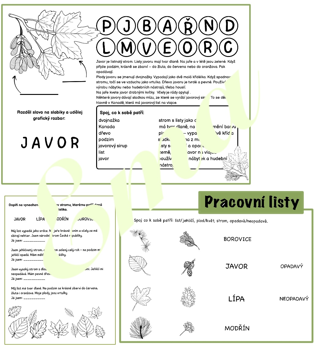 - Tento soubor je určen pro výuku českého jazyka na 1. stupni ZŠ (zejména 2.–3. ročník). Zaměřuje se na propojení jazyka s tématem stromů, a to pomocí čtení s porozuměním, práce s textem, rozšiřování slovní zásoby a spojení s přírodou.