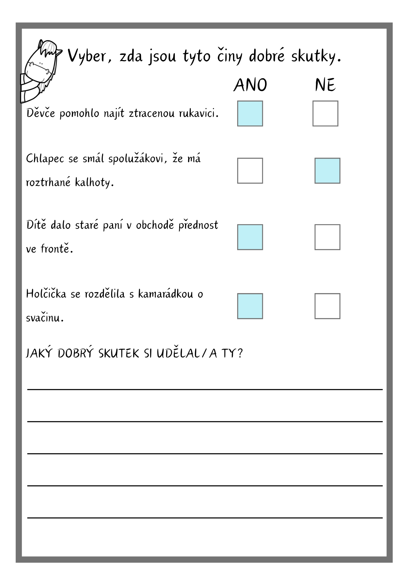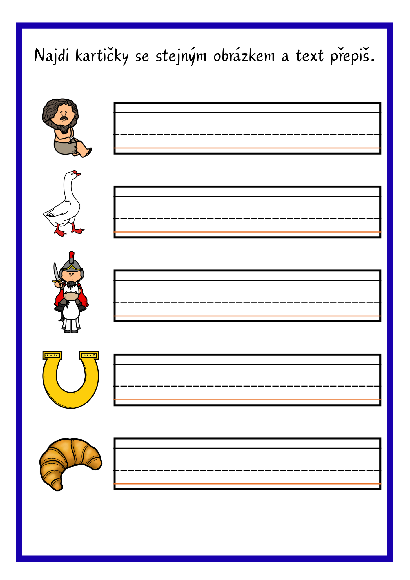 - úkoly na čtení s porozuměním, psaní vět a tvoření tématicky laděných obrázků