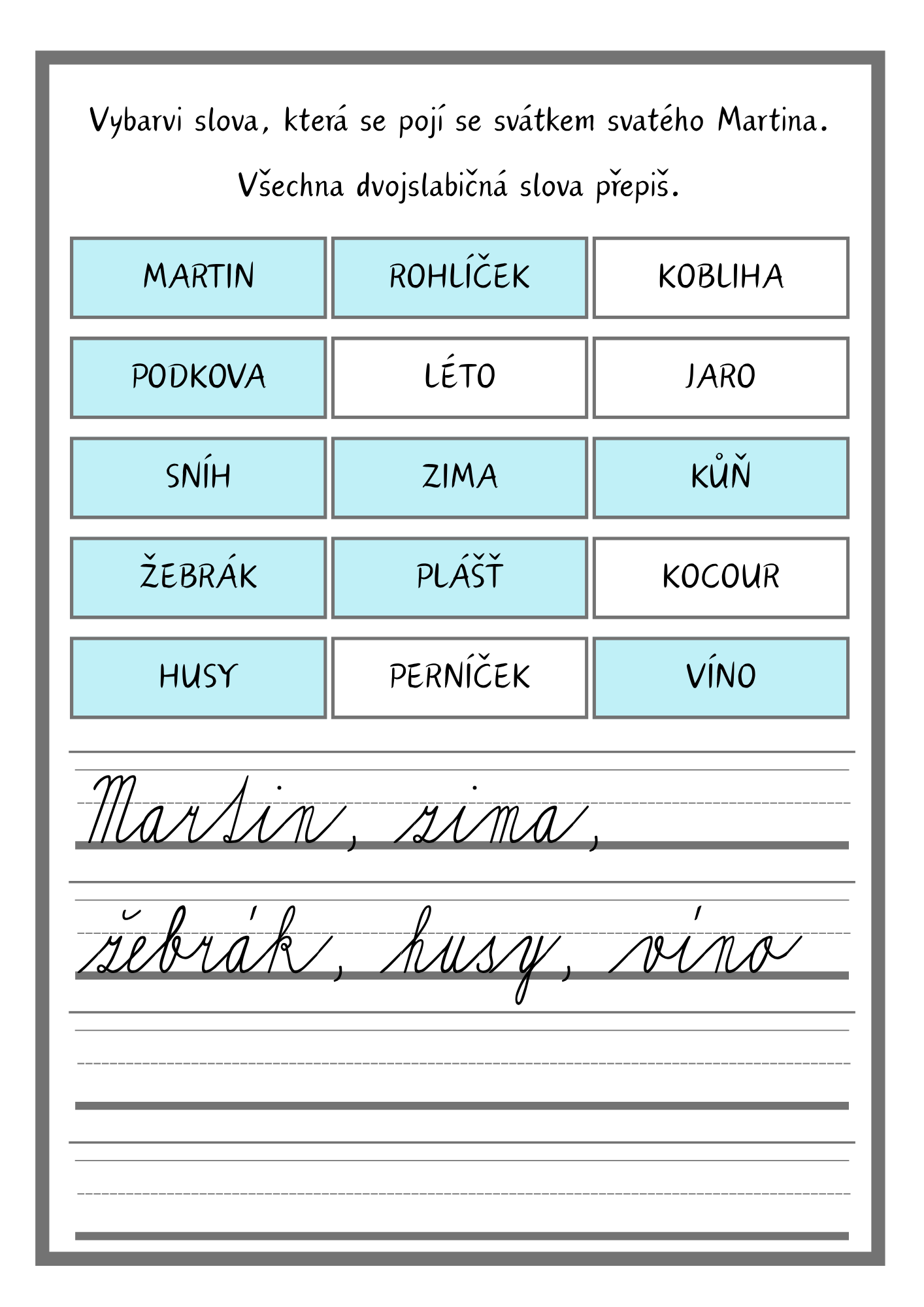 - přehlednou a tematickou knížečku pro 2. ročník zaměřenou na svatého Martina