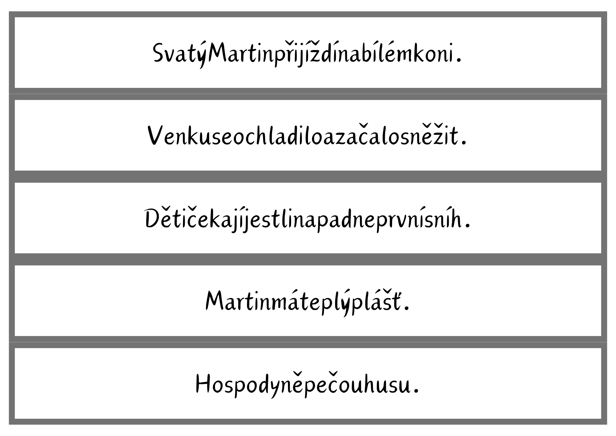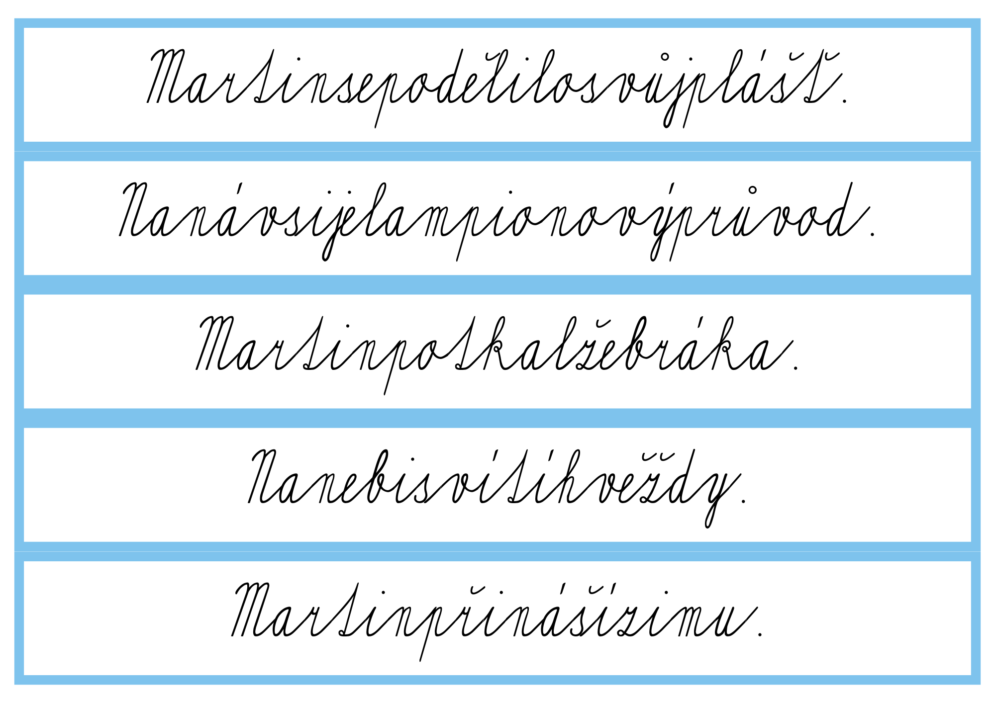 - texty bez ilustrací, aby se děti plně soustředily na psaní