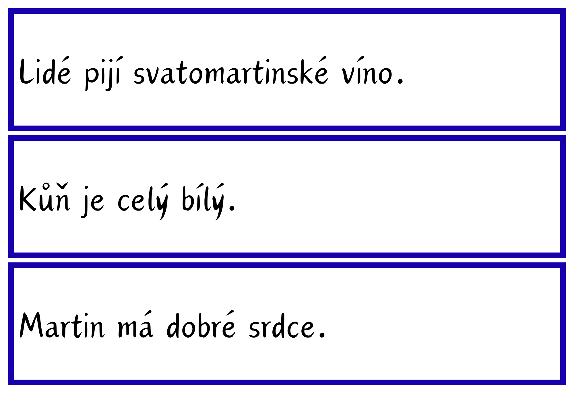 - 15 kartiček pro opis vět a 15 kartiček pro přepis vět