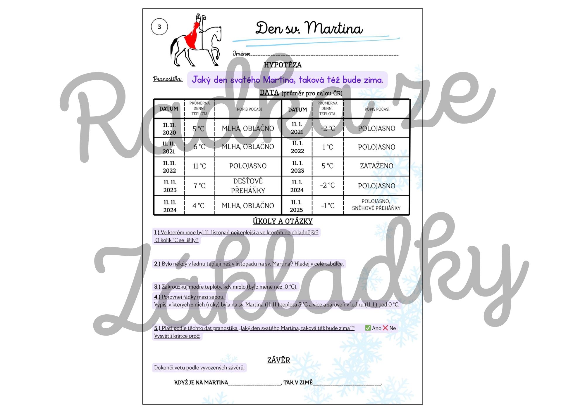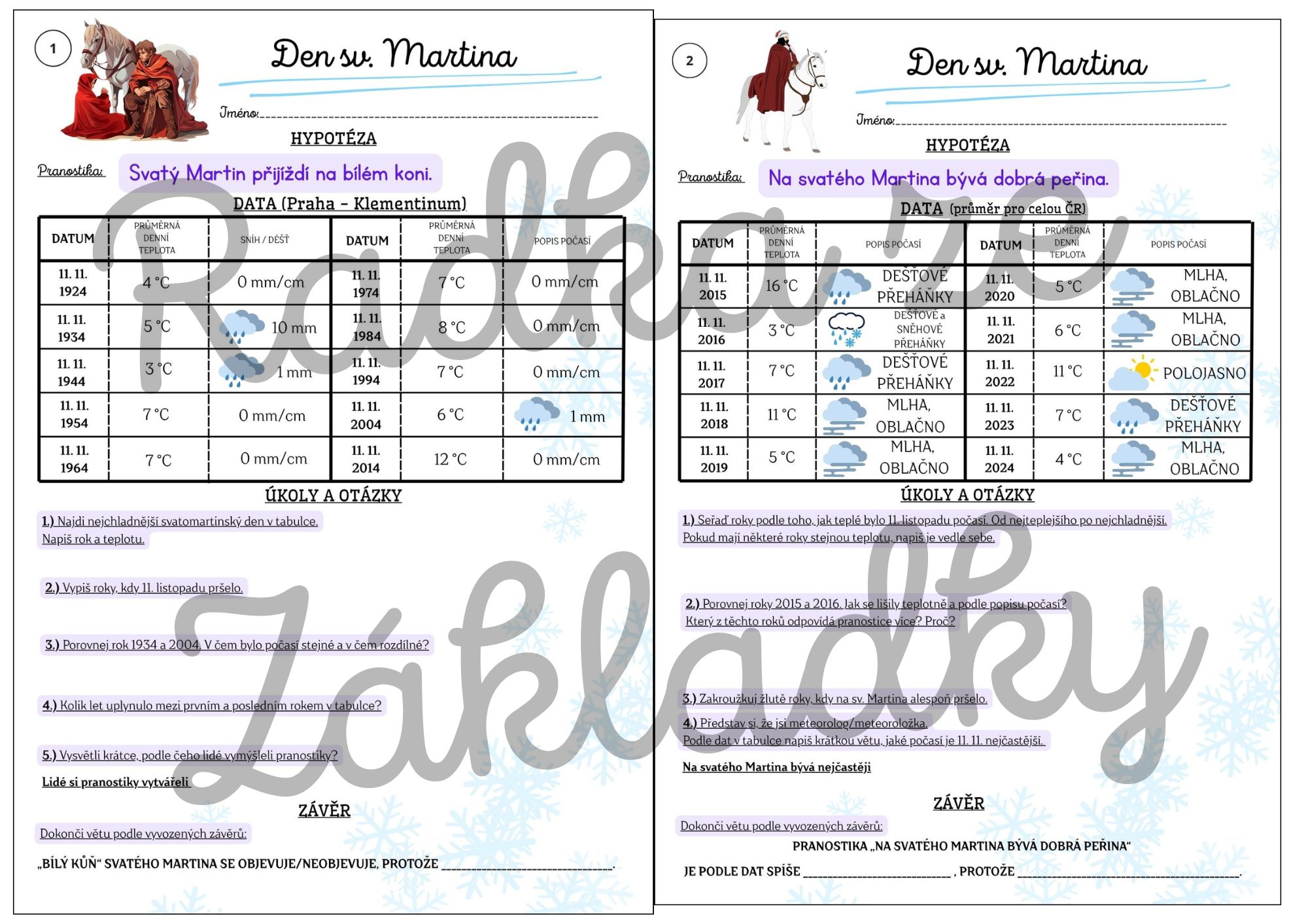 - 3 pracovní listy s různými pranostikami o sv. Martinovi