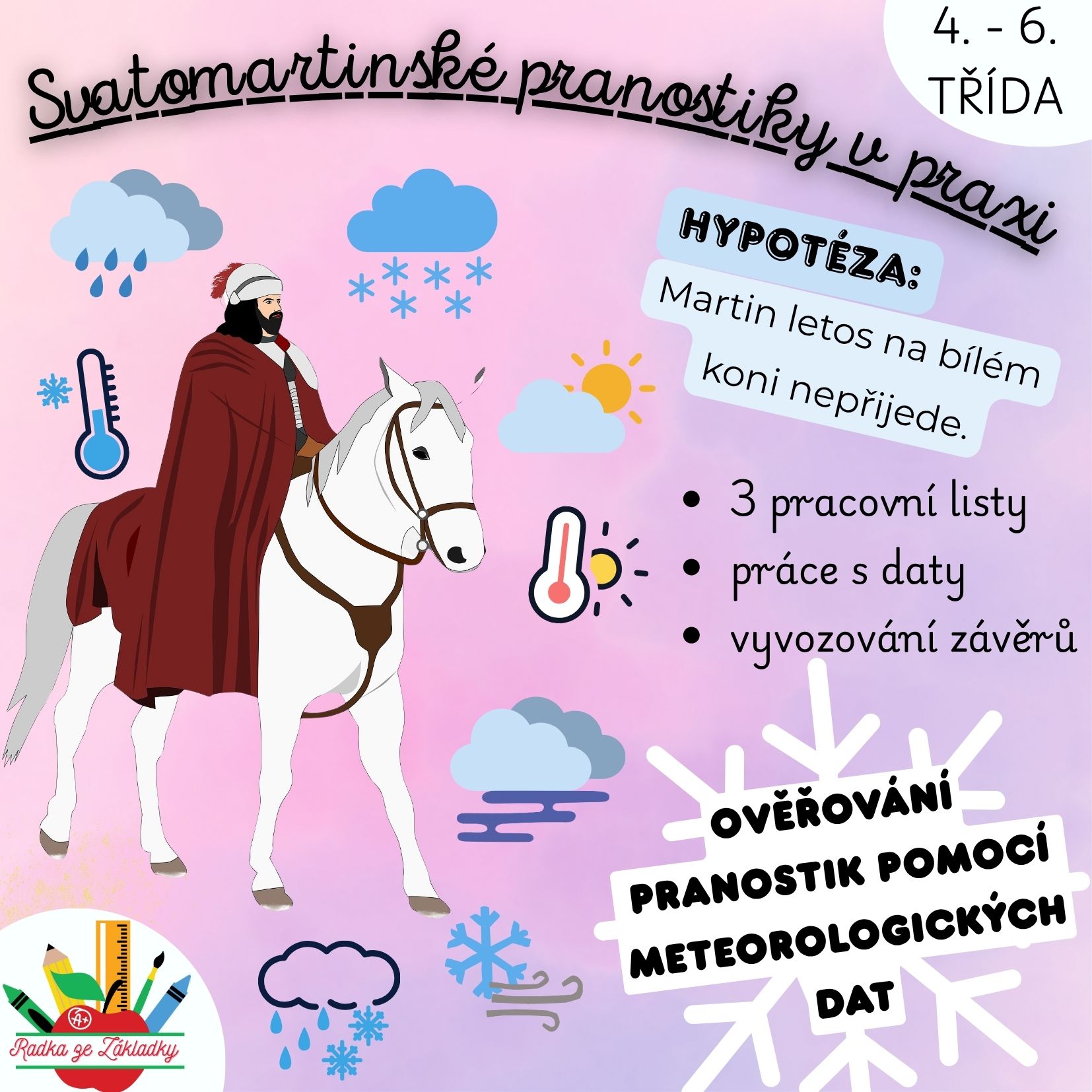 Materiál je určený pro žáky 4.-6. třídy, jedná se o mezipředmětový materiál, který propojuje téma počasí, pranostiky či tradice svátku sv. Martina.