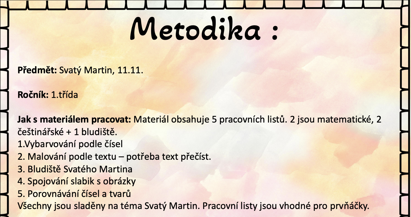 Všechny jsou sladěny na téma svatý Martin. Pracovní listy jsou vhodné pro prvňáčky.