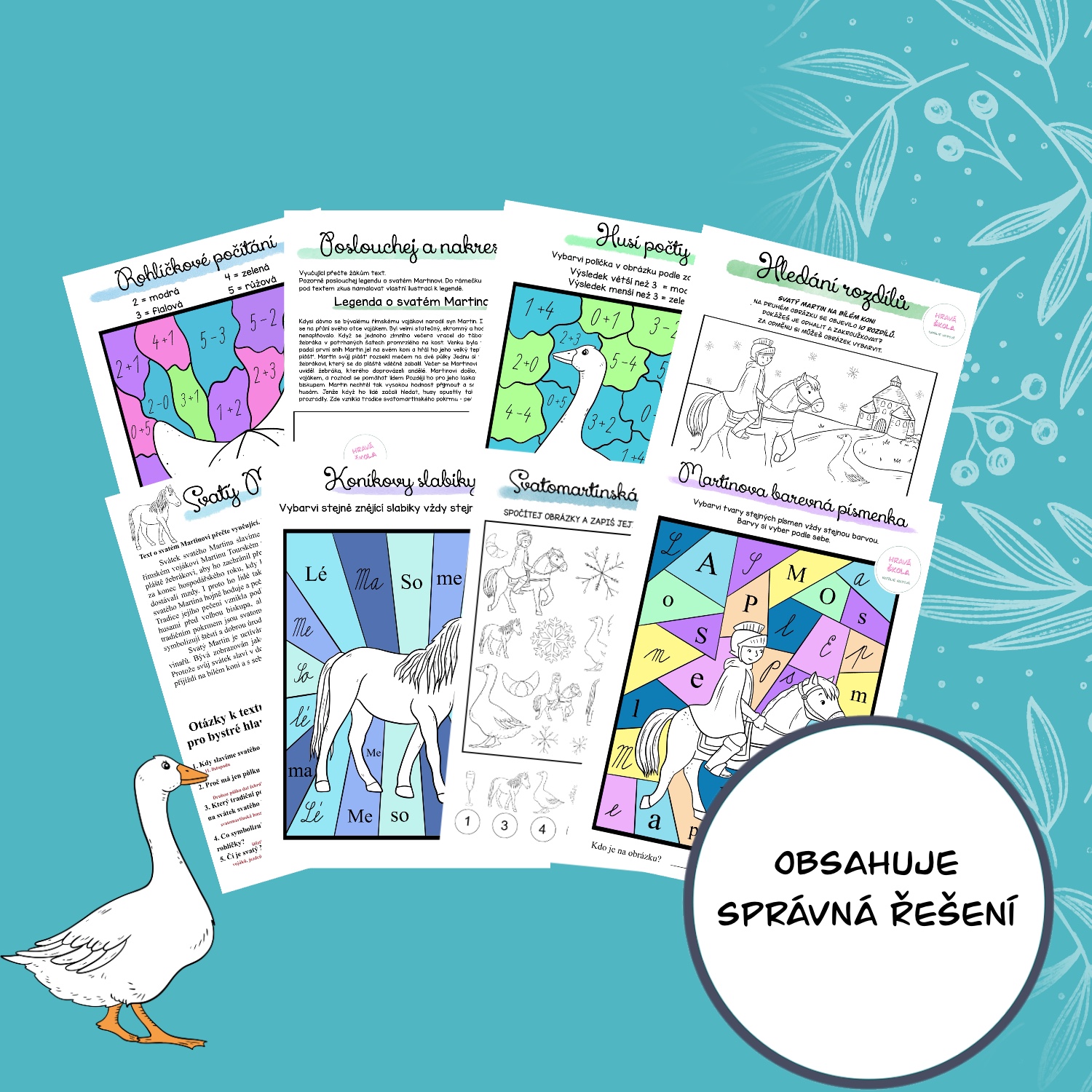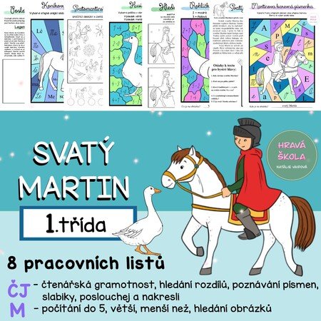 🪿MATERIÁL obsahuje 8 PL s TEMATIKOU SVATÉHO MARTINA do ČJ a M pro 1. TŘÍDU ❄️