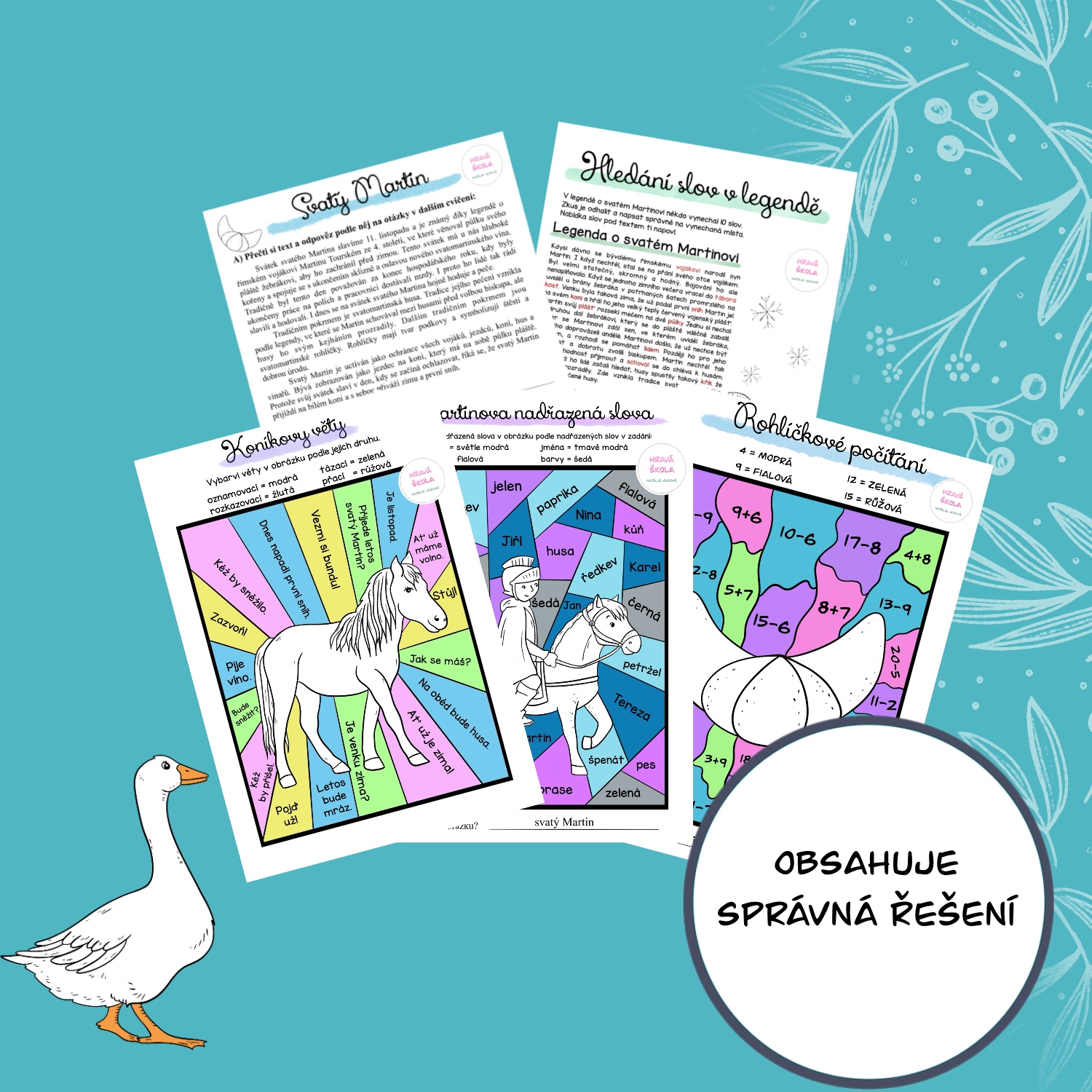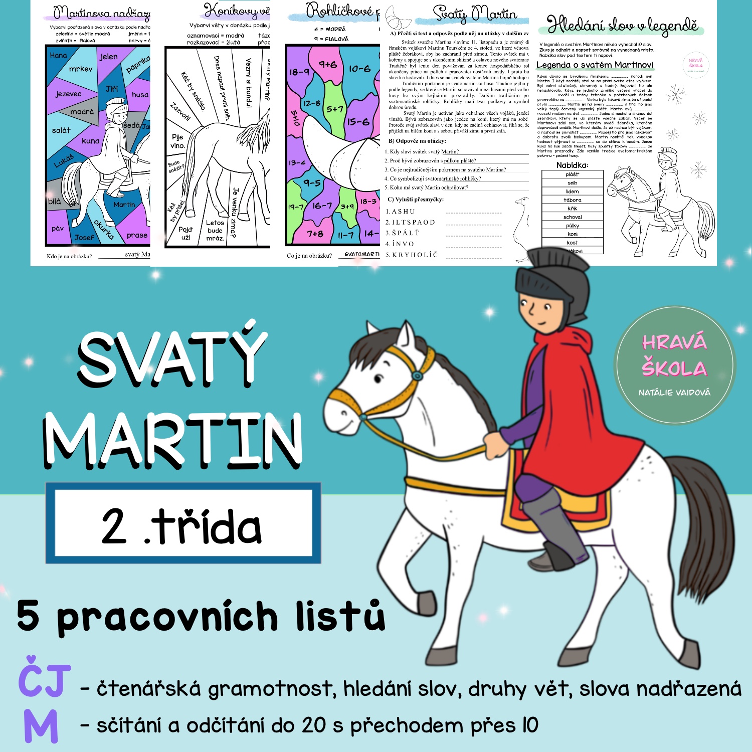 🪿MATERIÁL obsahuje 5 PL s TÉMATIKOU SVATÉHO MARTINA do ČJ a M pro 2. TŘÍDU ❄️