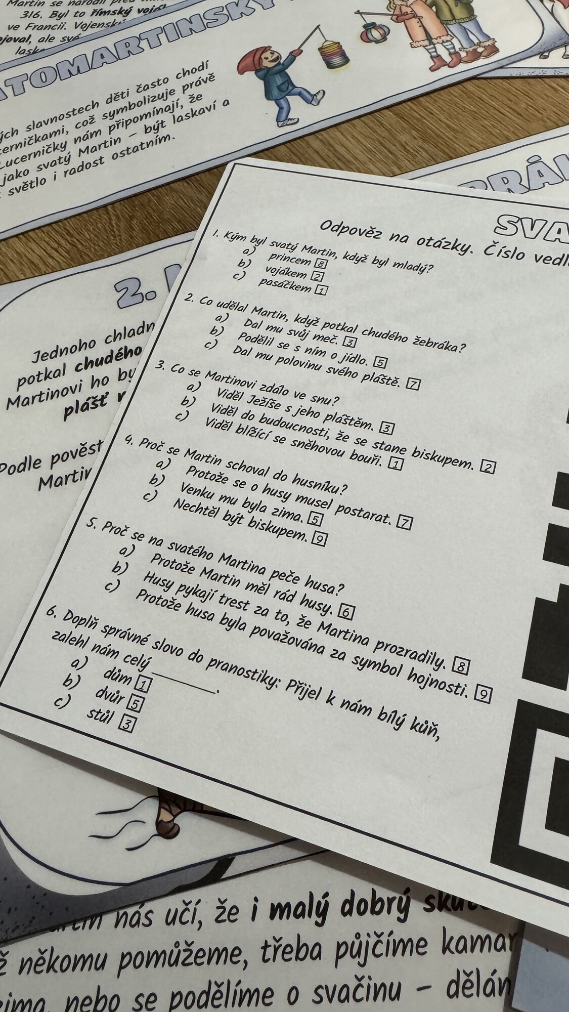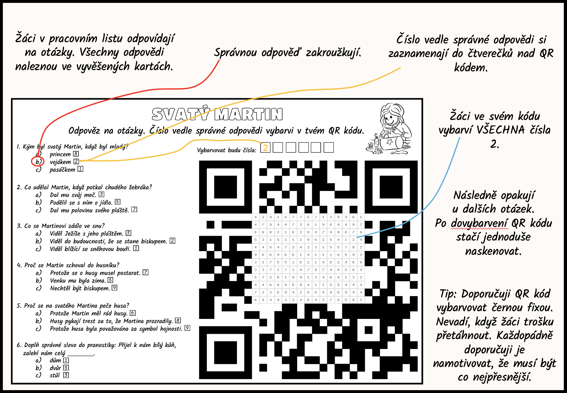 Běhačka, díky které se žáci seznámí s životem a tradicí sv. Martina. Aktivita obsahuje nejenom čtení s porozuměním a následný kvíz, ale také dotváření QR kódu.