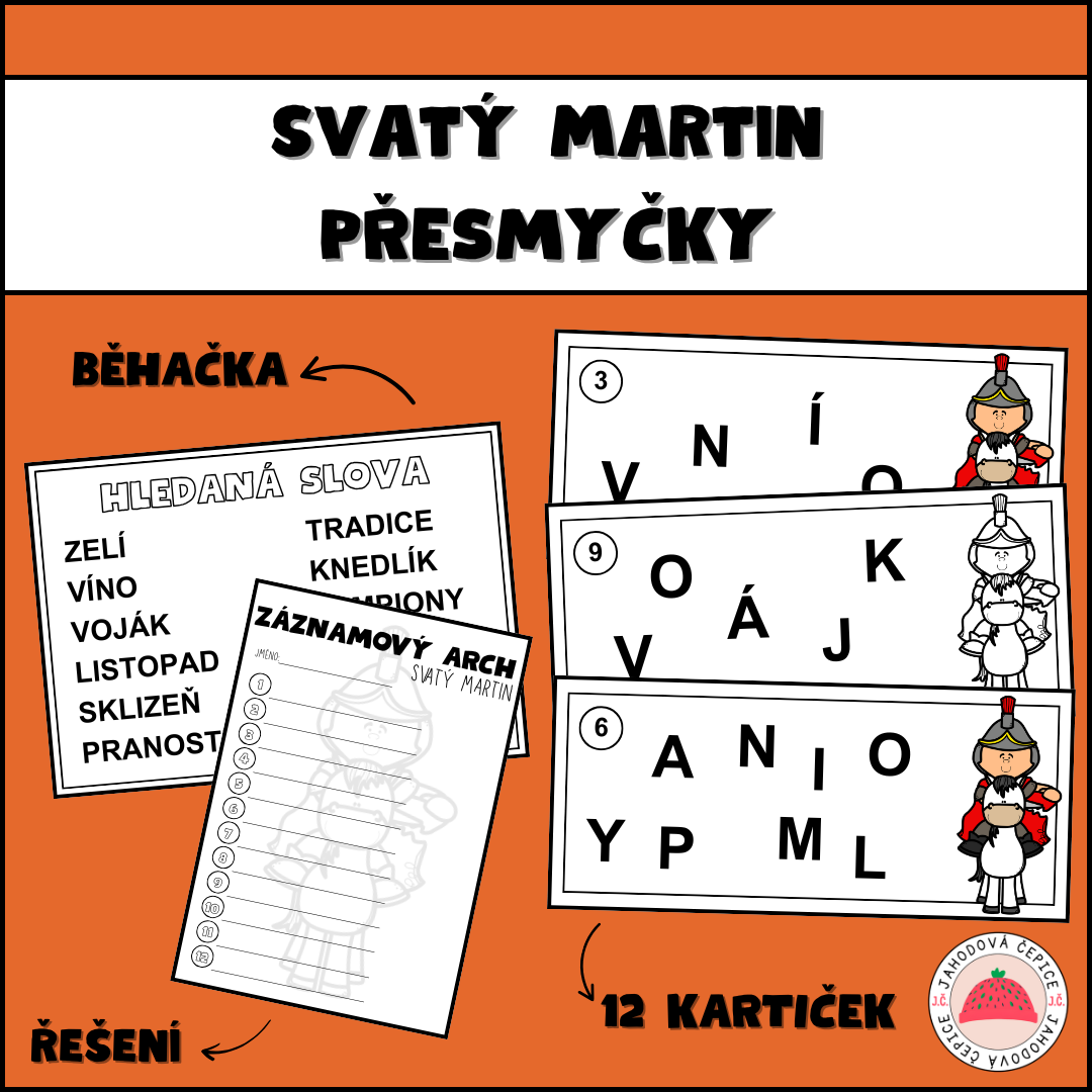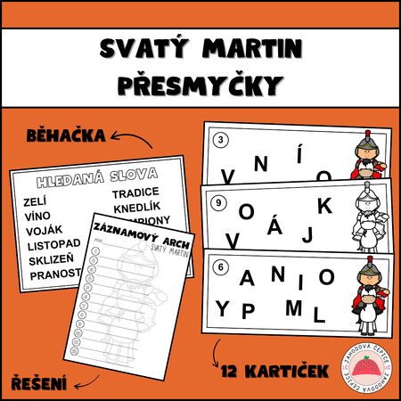 Tato zábavná hra je ideální pro žáky, kteří si chtějí otestovat své dovednosti při luštění přesmyček. Žáci si procvičí svou slovní zásobu a kreativitu při luštění přesmyček spojených s tématikou svatý Martin.