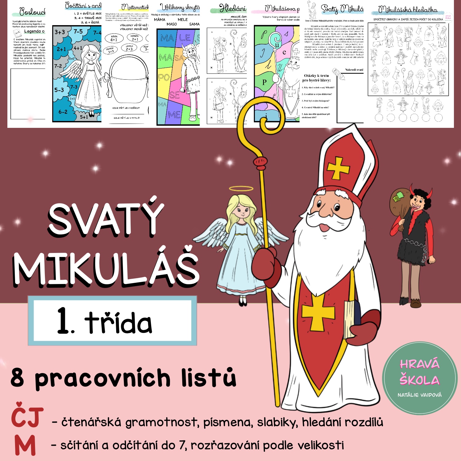 🎅🏼👼🏻 MATERIÁL obsahuje 8 PL s TÉMATIKOU SVATÉHO MIKULÁŠE do ČJ a M pro 1. TŘÍDU ❄️