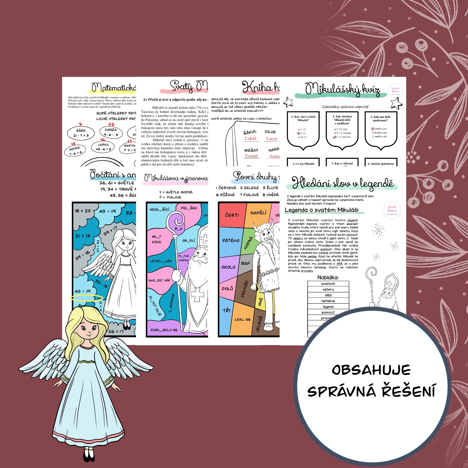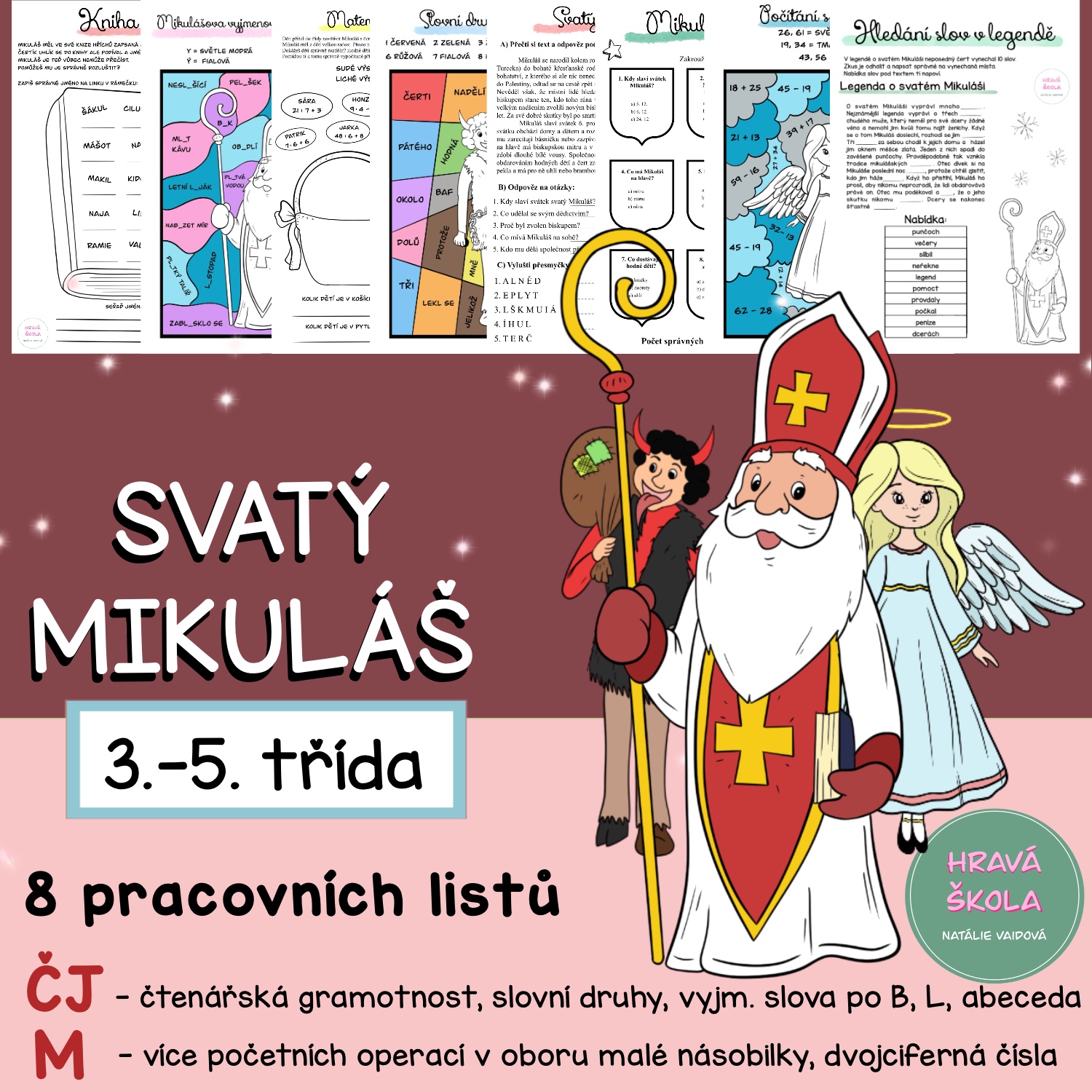 🎅🏼👼🏻 MATERIÁL obsahuje 8 PL s TÉMATIKOU SVATÉHO MIKULÁŠE do ČJ a M pro 3.-5. TŘÍDU ❄️