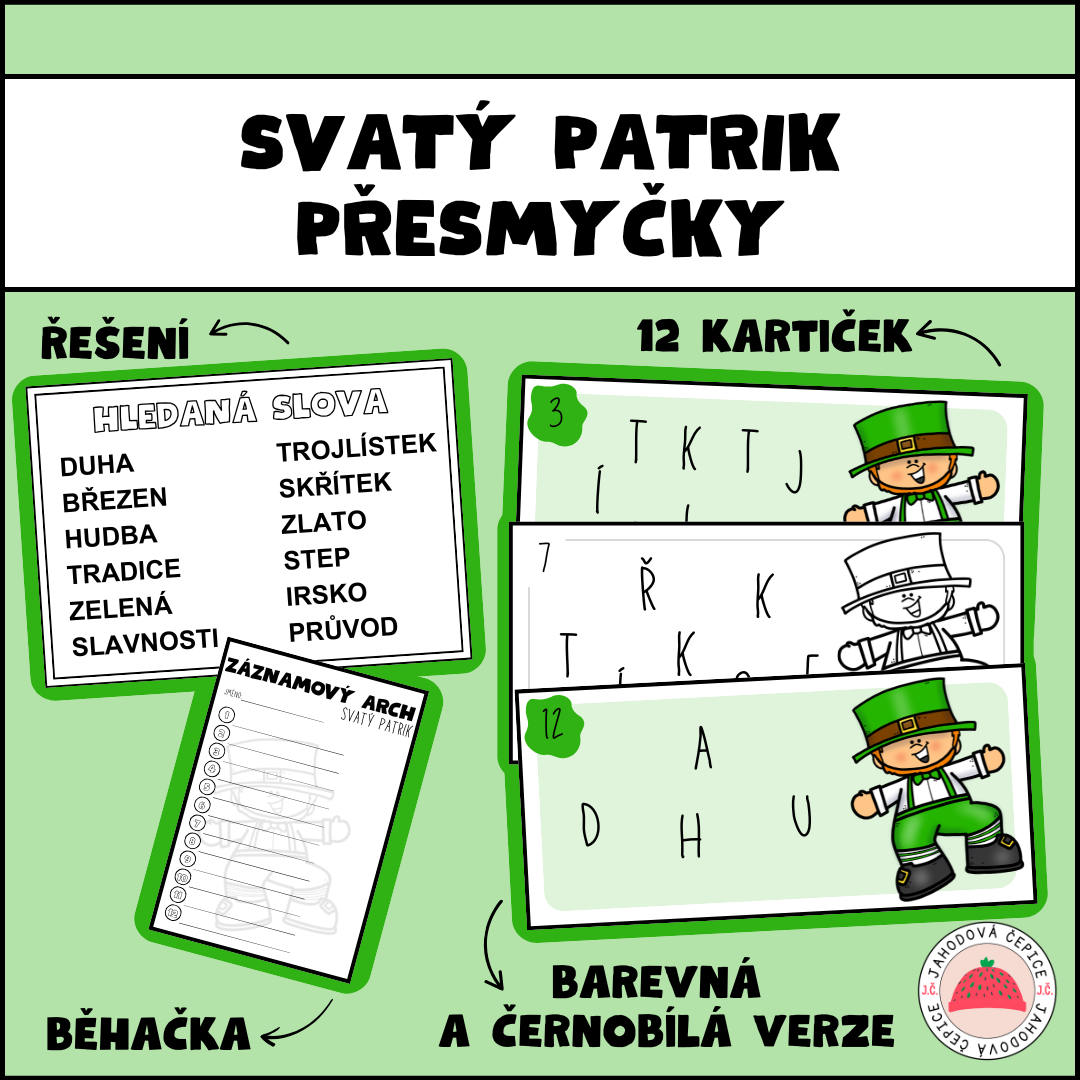 Tato zábavná hra je ideální pro žáky, kteří si chtějí otestovat své dovednosti při luštění přesmyček. Žáci si procvičí svou slovní zásobu a kreativitu při luštění přesmyček spojených s tematikou Den svatého Patrika.