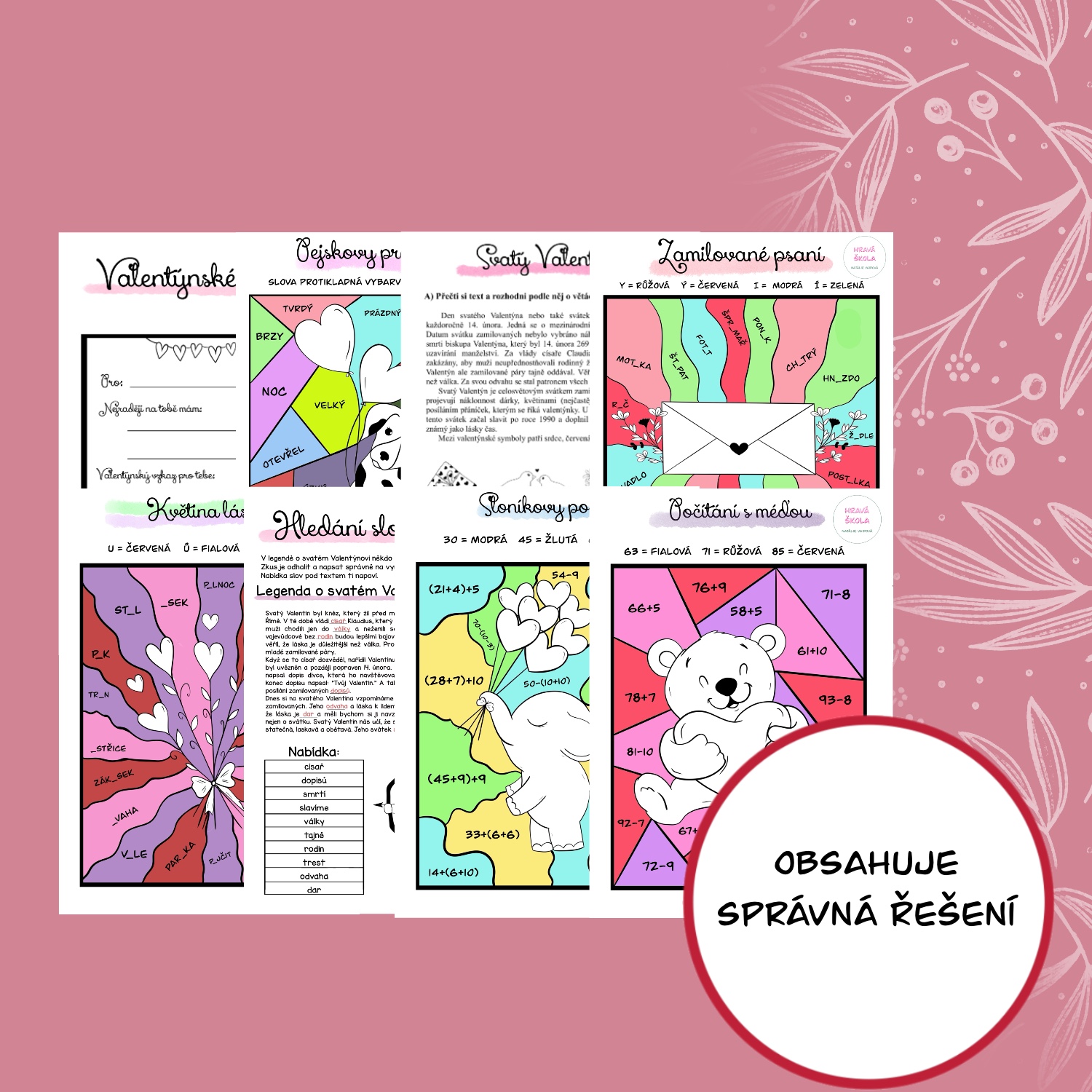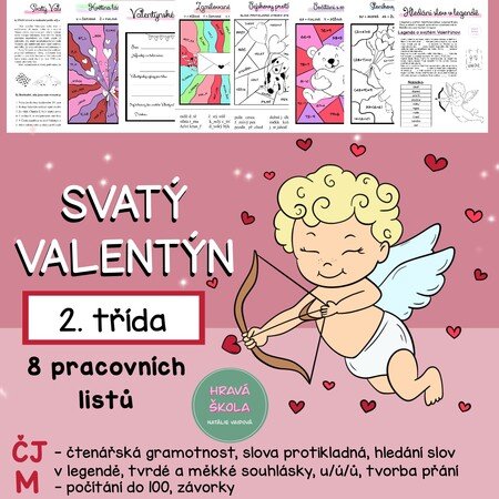 ❤️MATERIÁL obsahuje 8 PL s TEMATIKOU SVATÉHO VALENTÝNA do ČJ a M pro 2. TŘÍDU ❤️
