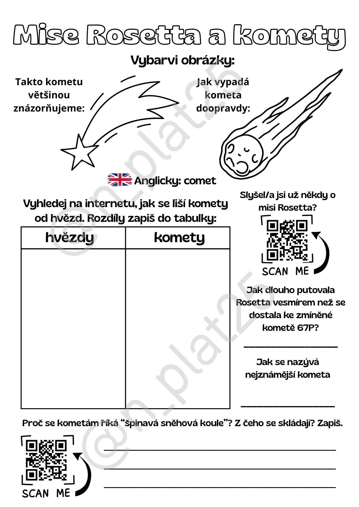 - zajímavosti o kometách, NASA a misích do kosmu.