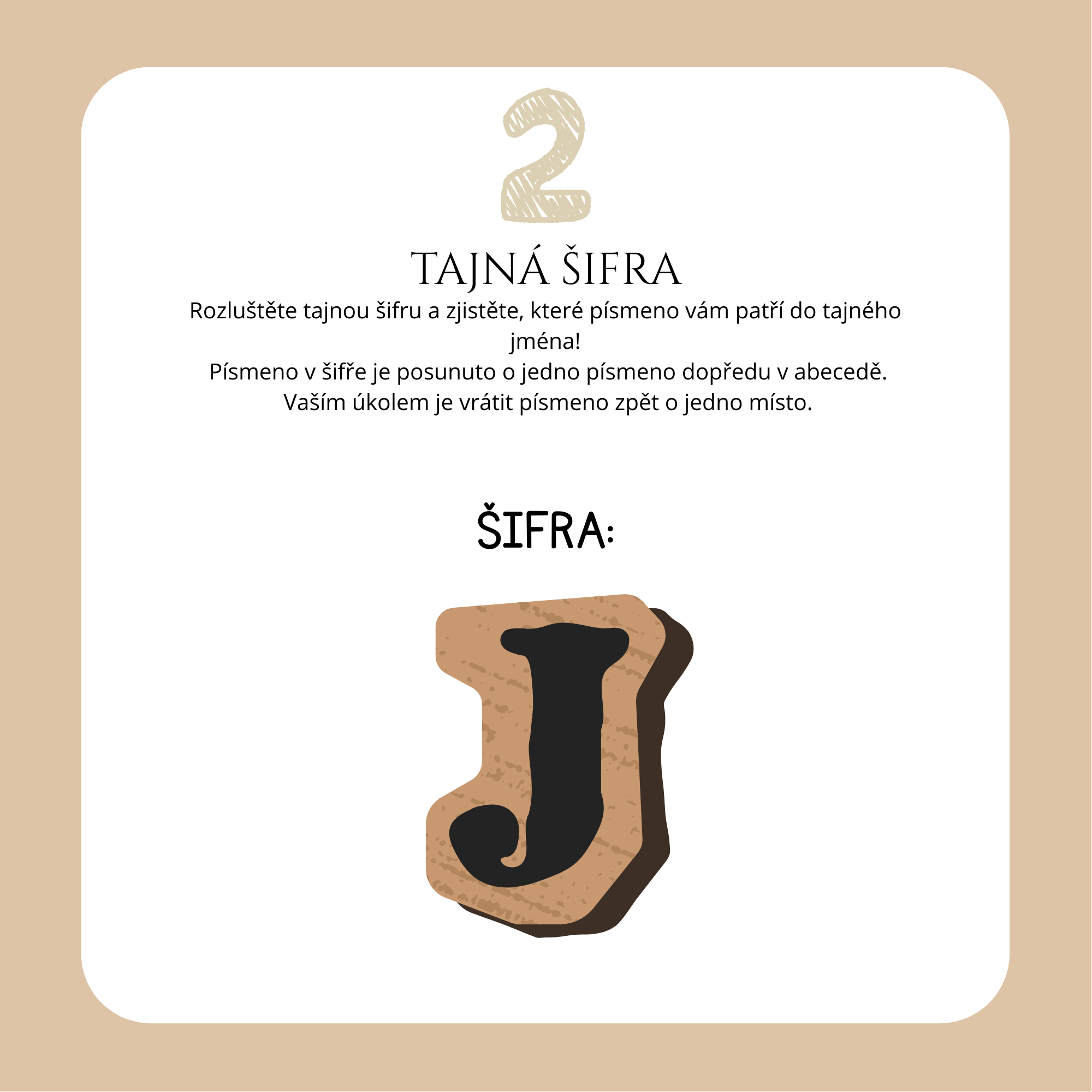 Za každé správně splněné stanoviště získají jedno písmeno. Na konci hry všechna písmena složí a odhalí jméno tajného přitele!