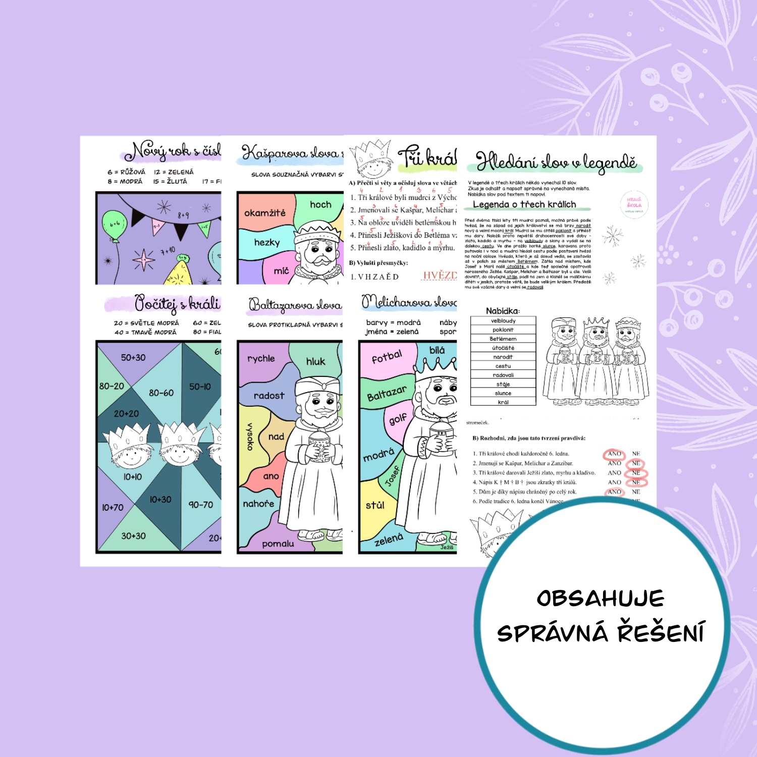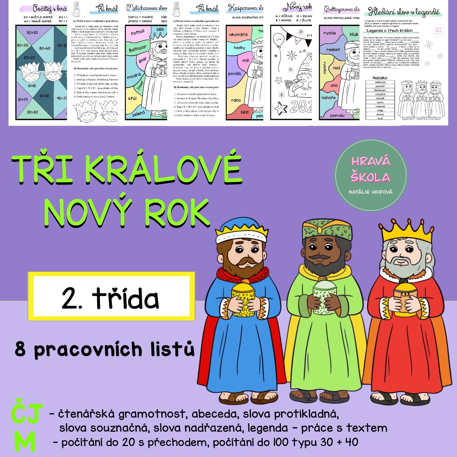 👑 MATERIÁL obsahuje 8 PL s TEMATIKOU TŘÍ KRÁLŮ A NOVÉHO ROKU do ČJ a M pro 2. TŘÍDU ❄️