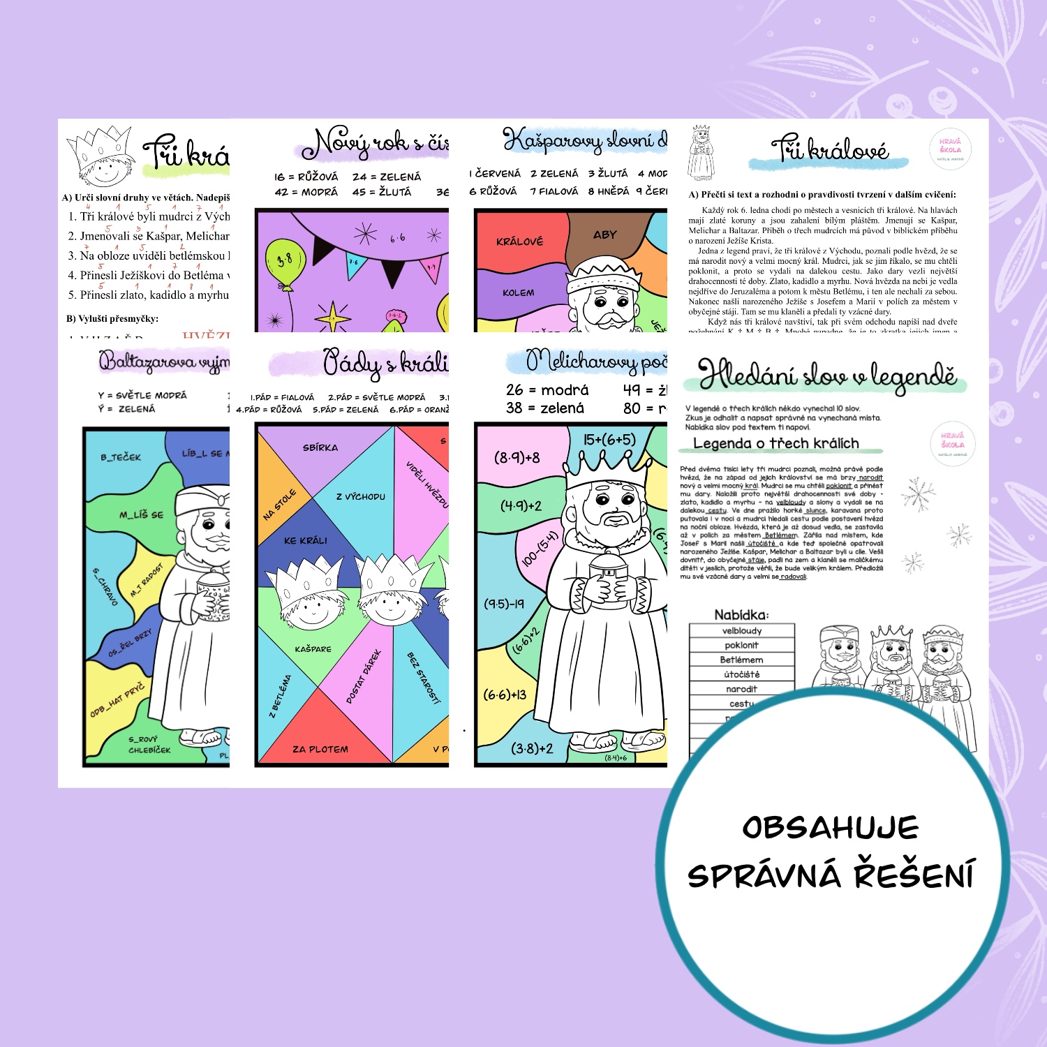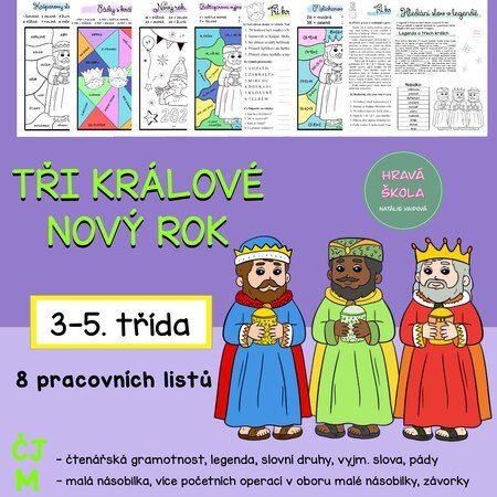 👑 MATERIÁL obsahuje 8 PL s TEMATIKOU TŘÍ KRÁLŮ A NOVÉHO ROKU do ČJ a M pro 3.-5. TŘÍDU ❄️